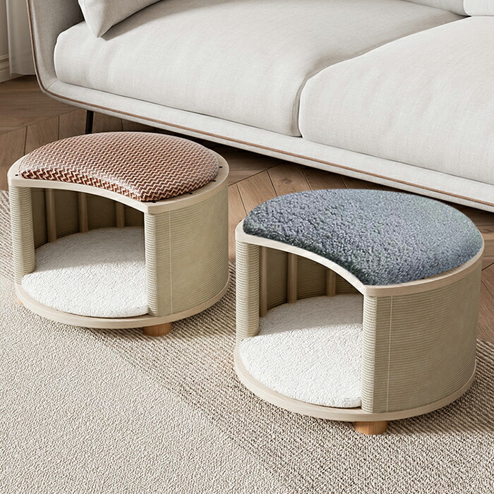 キャットハウス スツール兼用 ペットベッド ペットハウス スツール ペットベッド 猫 ペットスツール 犬 キャット ハウス ドーム型 猫 ハウス ベッド ドッグ 小型犬 室内用 椅子 オールシーズン 木製 クッション ストレス解消 通気性いい