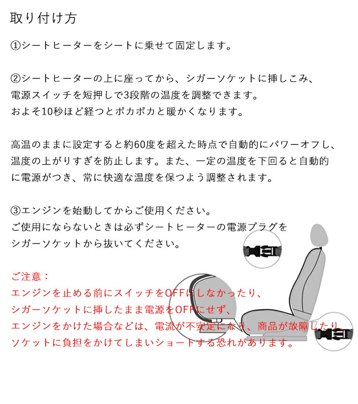 シートヒーター 車用ヒーター 座席シート 車 後付け あったかい 12V 24v 3段階温度調整 運転席 助手席 シガー電源 暖かい 加熱シート 加熱カーシート カーシートカバー ヒ ホットカーシート