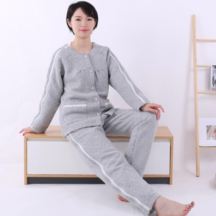 介護用パジャマ マジックテープ 全開 フルオープン キルティング レディース 厚手 綿 コットン 長袖 ロングパンツ 婦人 女性 介護 パジャマ 入院 入院服 骨折 怪我 シニア 春 秋 冬 高齢者