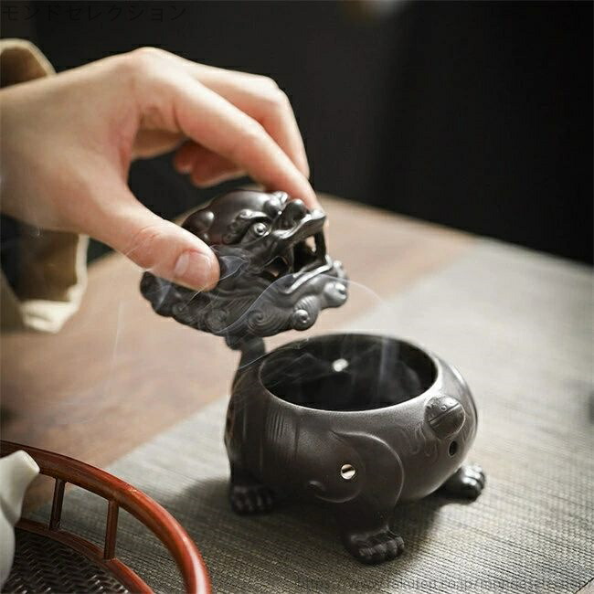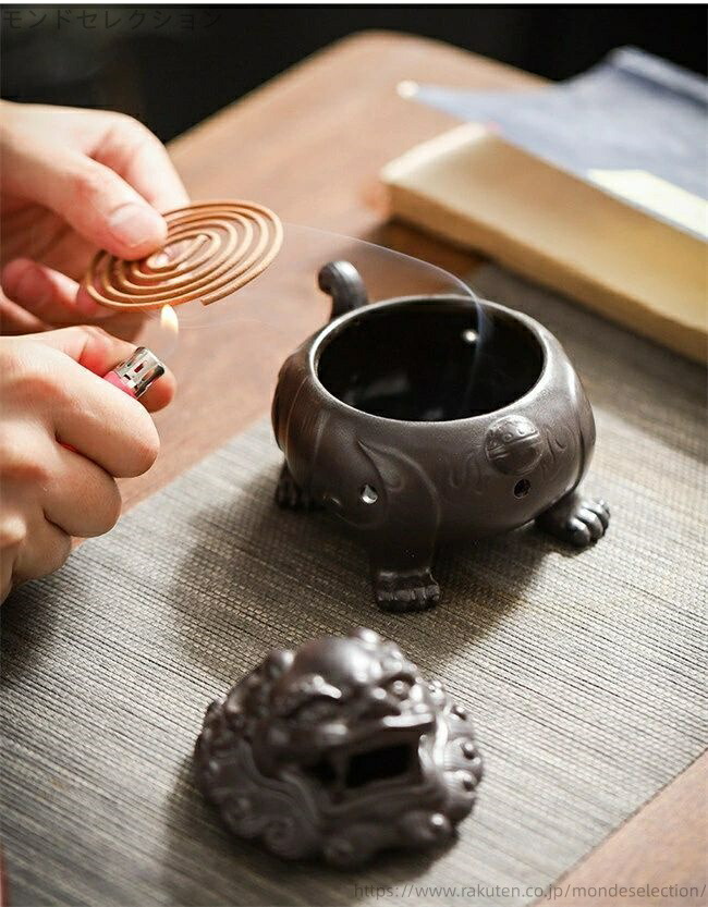 贈り物 プレゼント 陶 線香皿 蓋付香炉 渦巻線香用つり台【お線香】