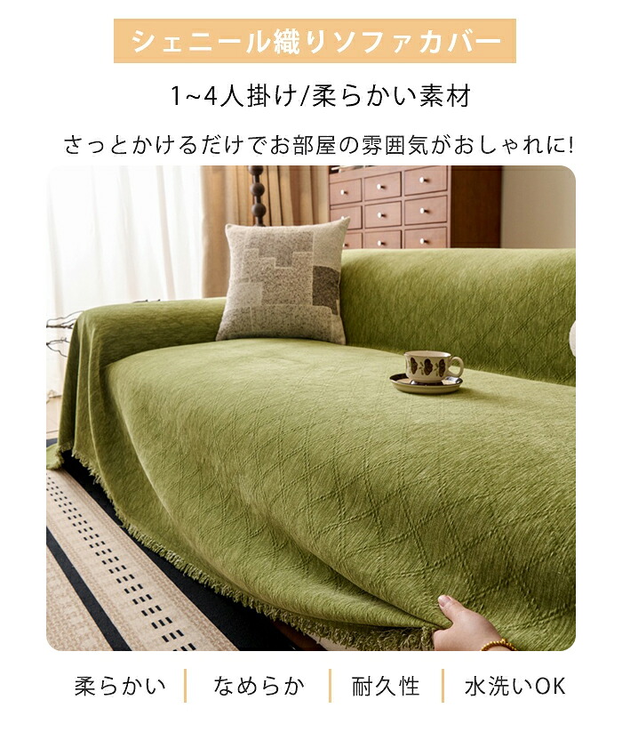 ソファーカバー 犬猫対策 洗える かけるだけ マルチカバー シェニール織 フリル 耐摩耗性 ソファカバー 通気性 汚れ防止 肘なし 厚め 犬 猫 オールシーズン 通年 柔らかい 座布団 座面 さらさら