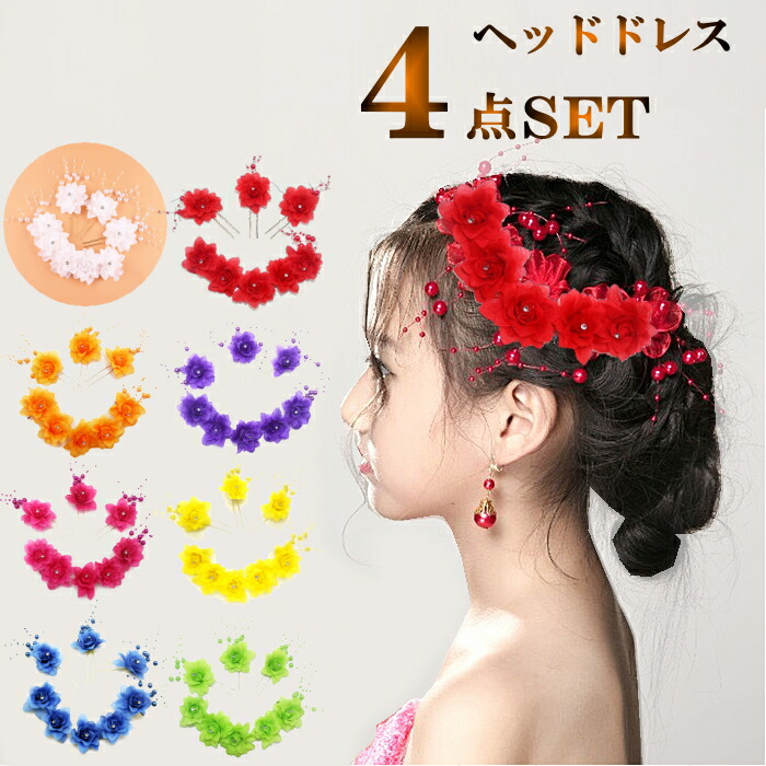 お得な豪華4点セット ヘッドドレス バ レディースジュエリー アクセサリー ヘアアクセサリー ヘアピン 豊富な品揃え ホワイト レッド イエロー パープル ブルー ピンク グリーン オレンジ