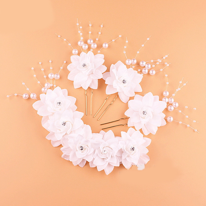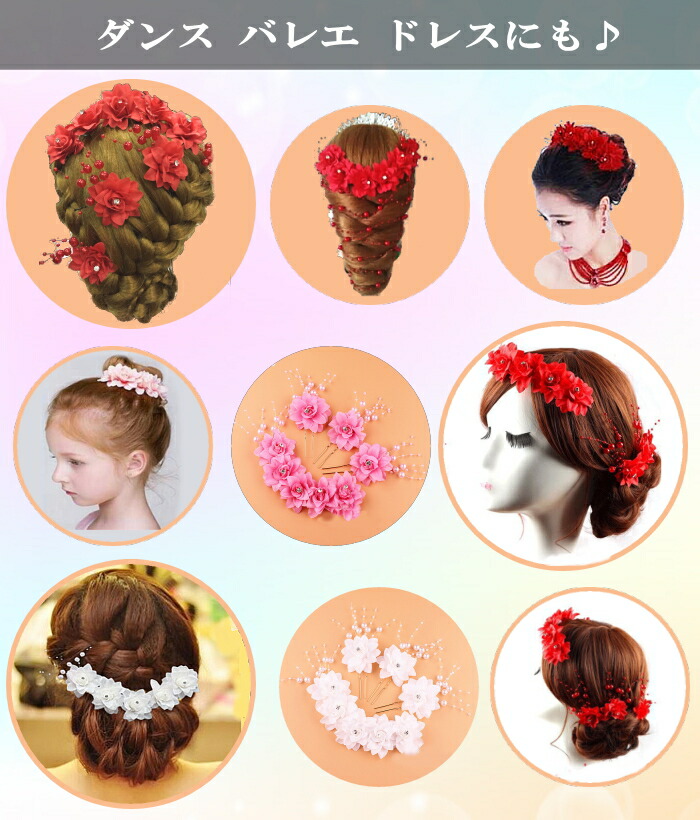 お得な豪華4点セット ヘッドドレス バックカチューシャ ワイヤー 髪飾り コサージュ ダンス 衣装 パール 花 花冠 Uピン ティアラ 舞台 フラメンコ ヒップホップ ヘアアクセサリー ヘ 社交ダンス
