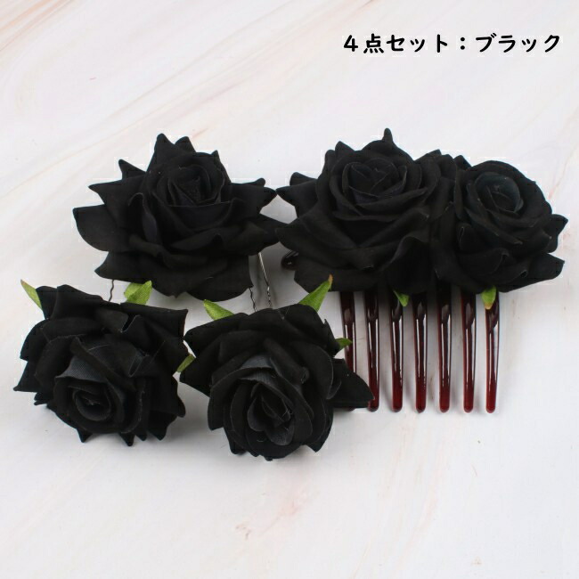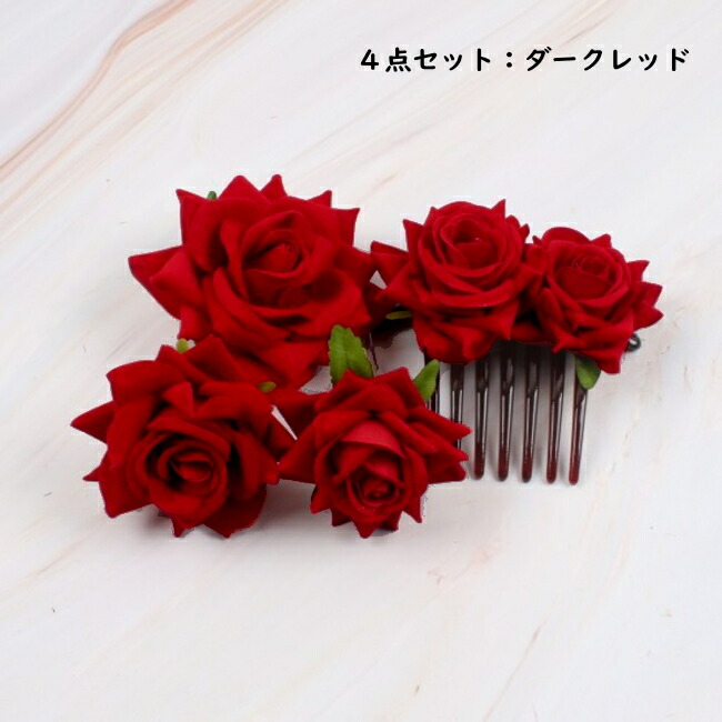 バレッタ ヘアコーム 大きめ コサージ 体操 ダンス フラメンコ その他 豊富な品揃え 4点セット ヘアコーム単品 バレッタ単品 ダークレッド ブラック ホワイト ネイビー レッド