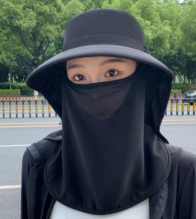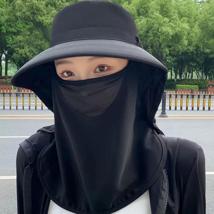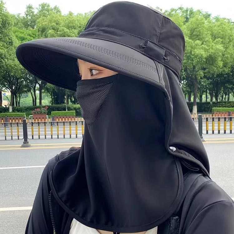 ・広めのつばとネックシェードに加えて、取り外し可能なフェイスガードで紫外線対策!