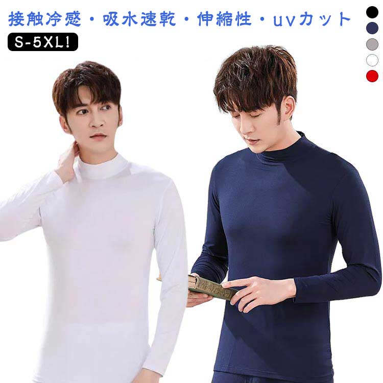 接触冷感 メンズ 吸水速乾 ゴルフインナー 日焼け防止 ハイネック uvカット ゴルフウェア ゴルフインナーウェア ストレッチ 通気 薄手 伸縮性 インナーシャツ 大きいサイズ S シンプル