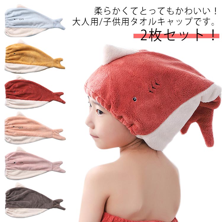スイミング プレゼント 大人 ヘアキャップ 子供 キッズ 女の子 かわいい ドライキャップ タオルキャップ 男の子 お風呂上がり みみ 耳 タオル帽子 吸水 ヘアドライタオル 可愛い おし 2枚セット