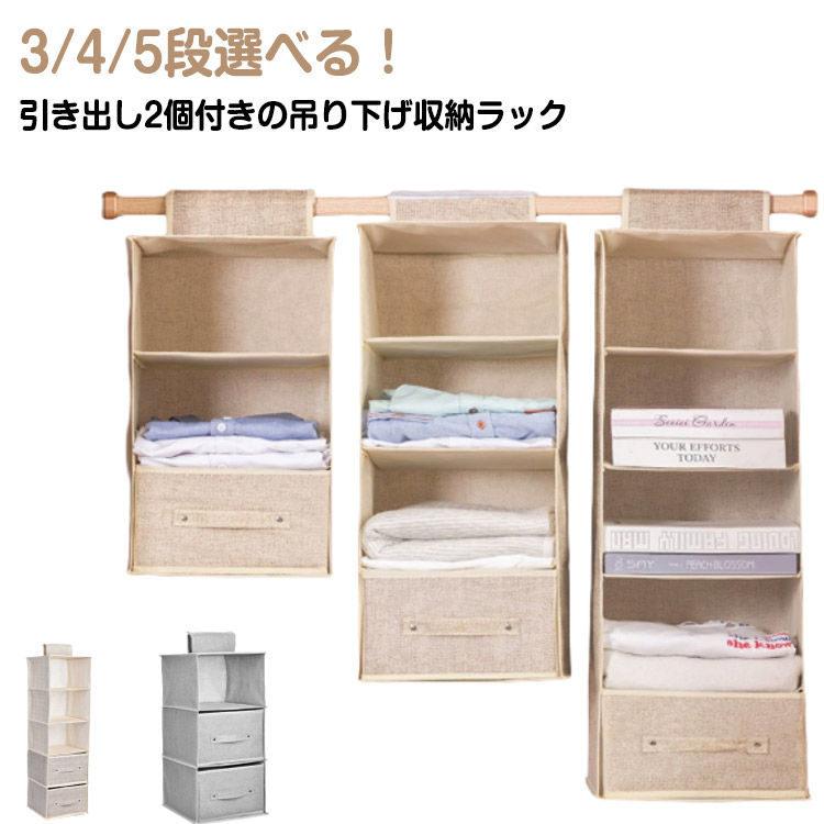 下着 バッグ 3段 4段 折りたたみ 5段 引き出し付き 衣類収納 クローゼット 吊り下げボックス スリム ラック 小物入れ 吊るせる収納 タオル 隙間収納 衣類収納ボックス 吊り下げ 大容量