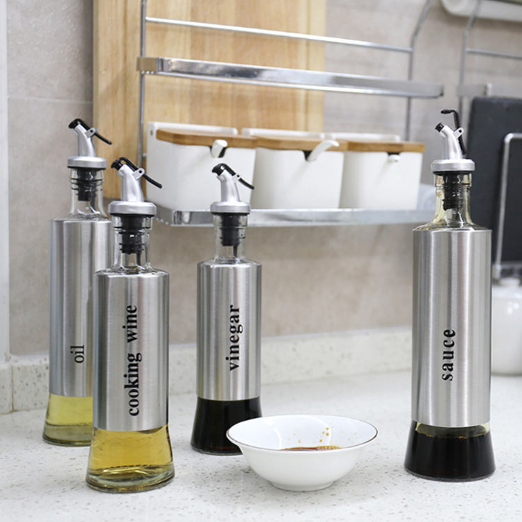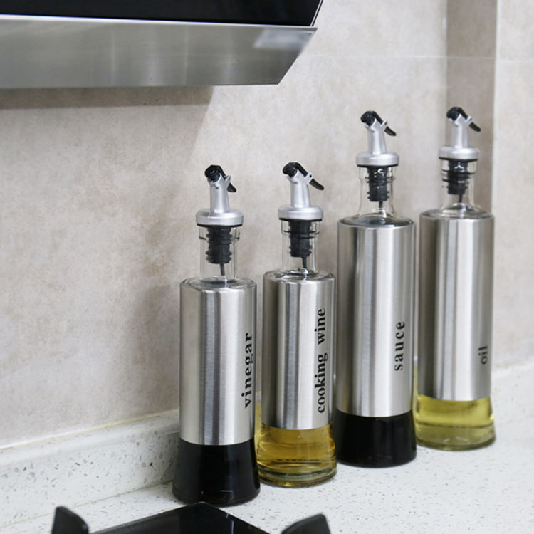 【割れにくく、耐久性抜群】ガラスとステンレスの2重構造で、割れにくく長くお使いいただけます。また、オリーブオイルを日光から効率的に保護し、調味料の保存期間を大幅に伸ばすことができます。