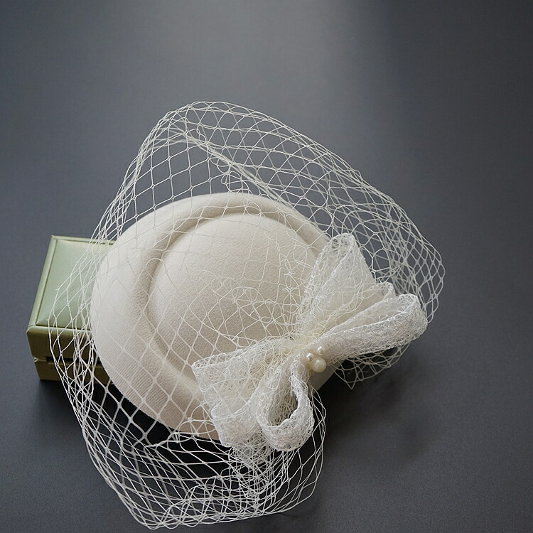 トーク帽 ベール付き トークハット フォーマル ウェディングヘッドドレス カクテル帽 オフホワイト 髪飾り