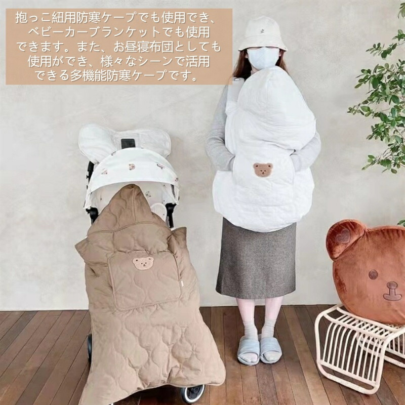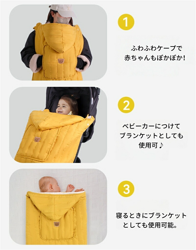抱っこ紐ケープ 冬用 防寒 ベビーカー ベビー ベビー服 ファッション ケープ マント 人気 オフホワイト ブラウン イエロー ピンク