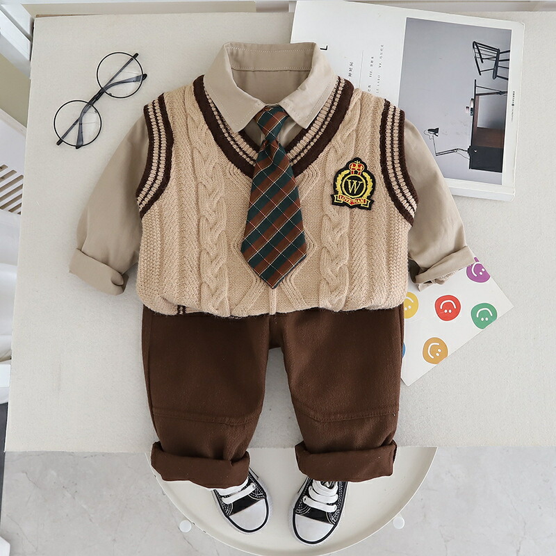 子供服 スーツ 男の子 キッズ フォーマル ニットベスト 長袖 シャツ ズボン 子供スーツ 入園式 ベビー フォーマルスーツ 子ども服 ネクタイ付き キッズスーツ ベビー服 男児 入学式 セットアップ