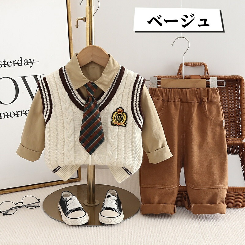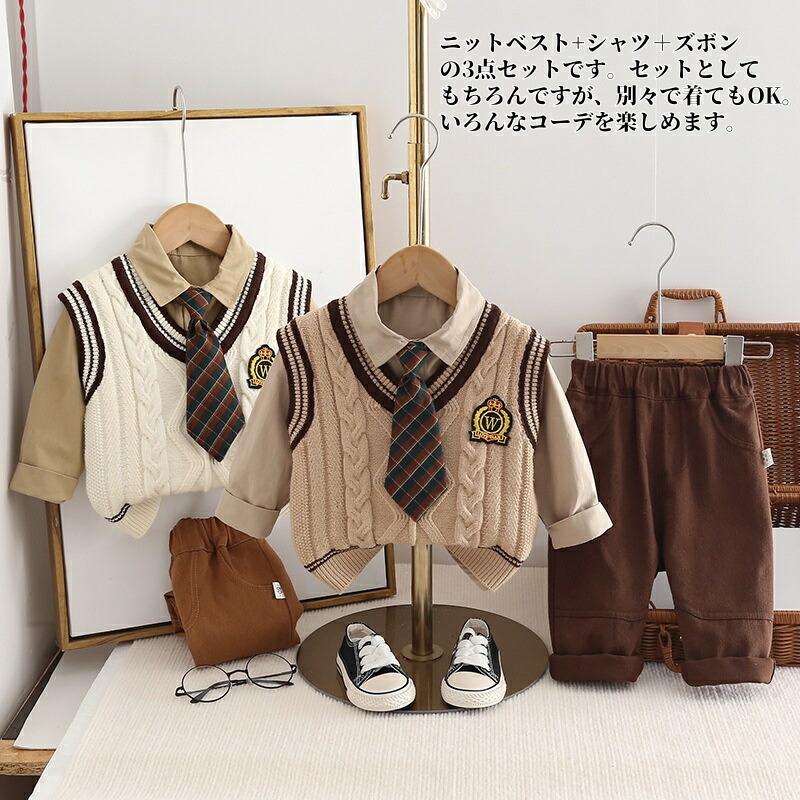 商品内容: キッズスーツ(ニットベスト+長袖シャツ+ズボン )