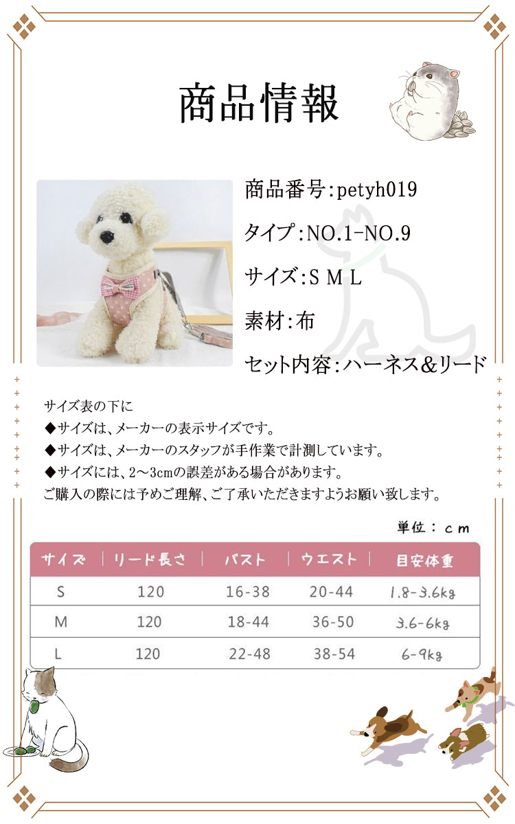 ペット用 犬用 ハーネスとリード 2点 犬用品 首輪 胴輪 リード ハーネスリード 豊富 S M L NO.1 NO.2 NO.3 NO.4 NO.5 NO.6 NO.7 NO.8 NO.9