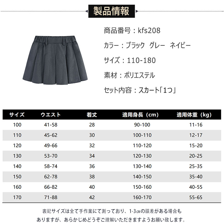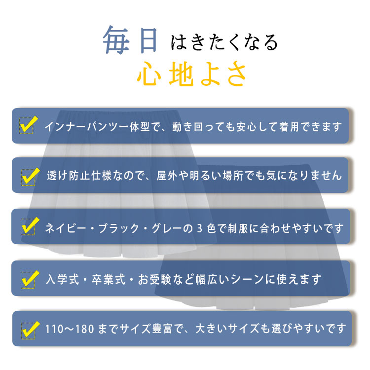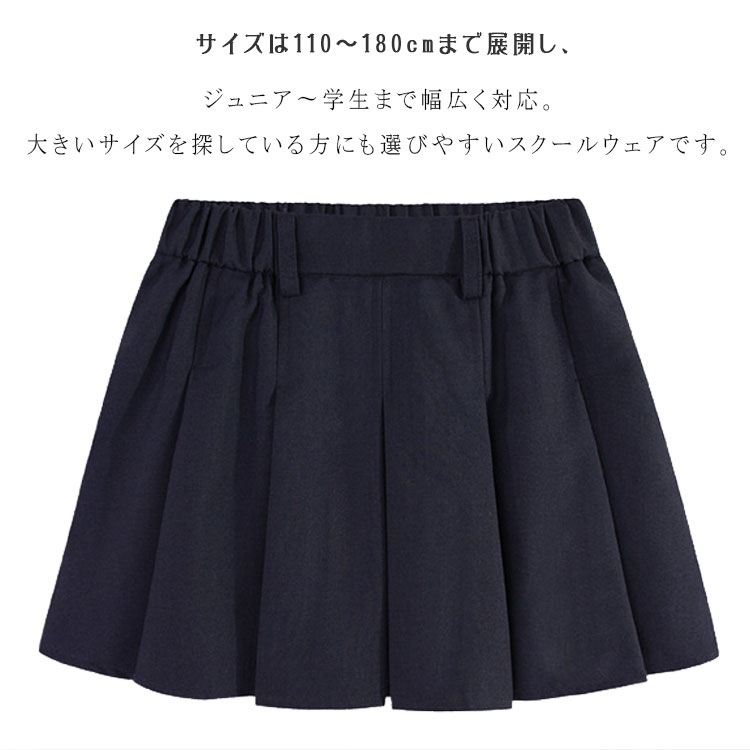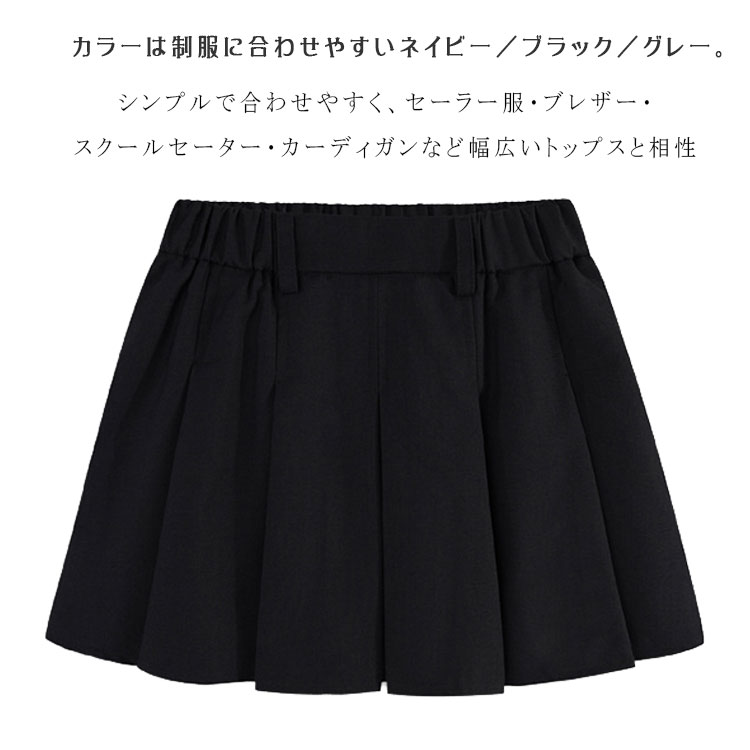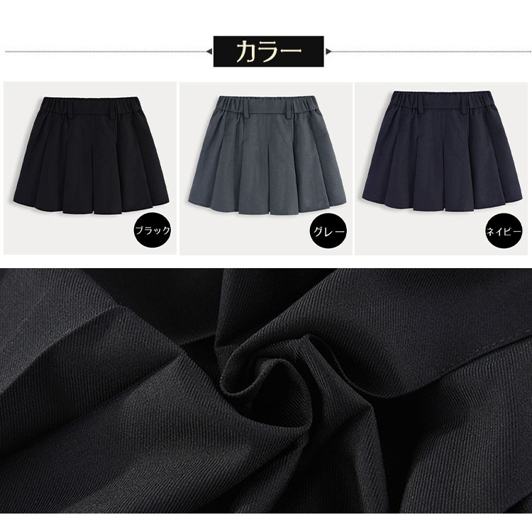 プリーツスカート パンツ付き JK制服スカート 無地 透け防止 大きいサイズ ネイビー/ブラック/グレー スクールスカート 中学生 高校生 ジュニア 入学式 卒業式 お受験 学園祭 発表会 110~180