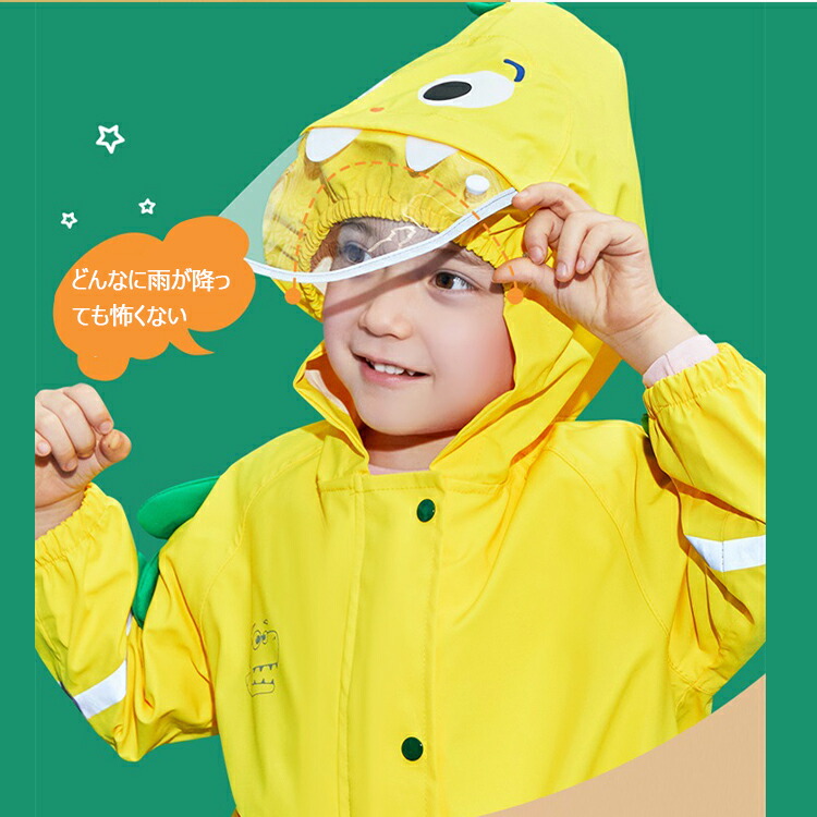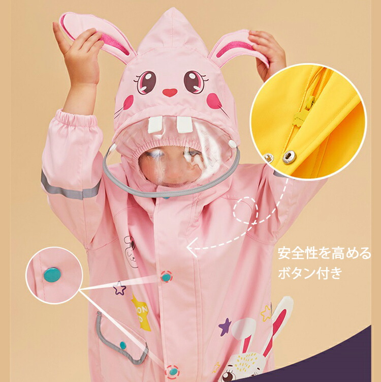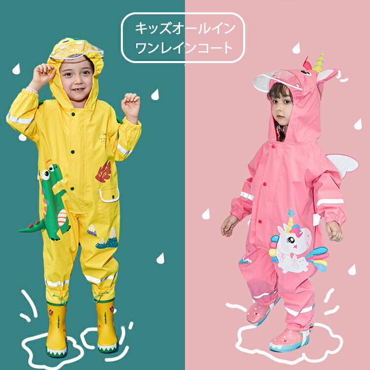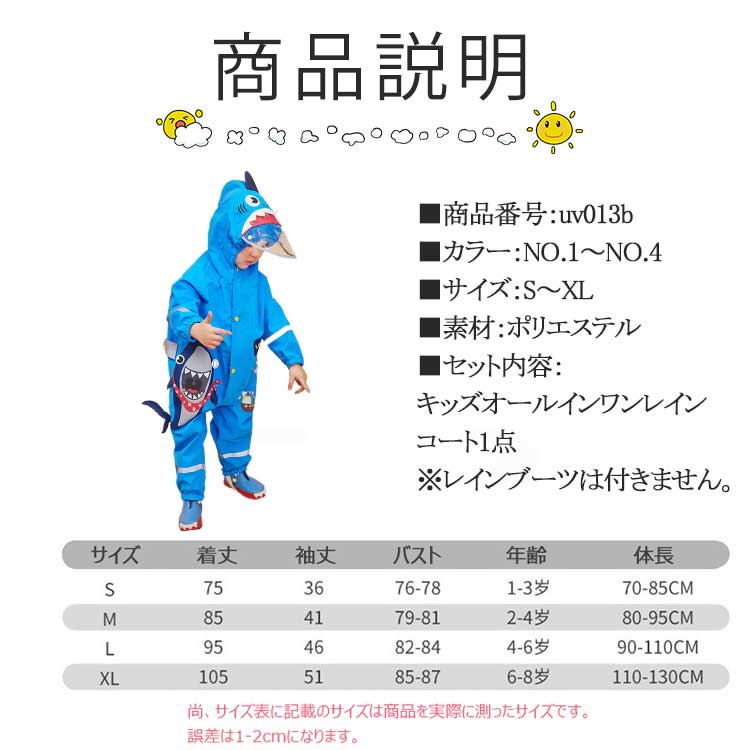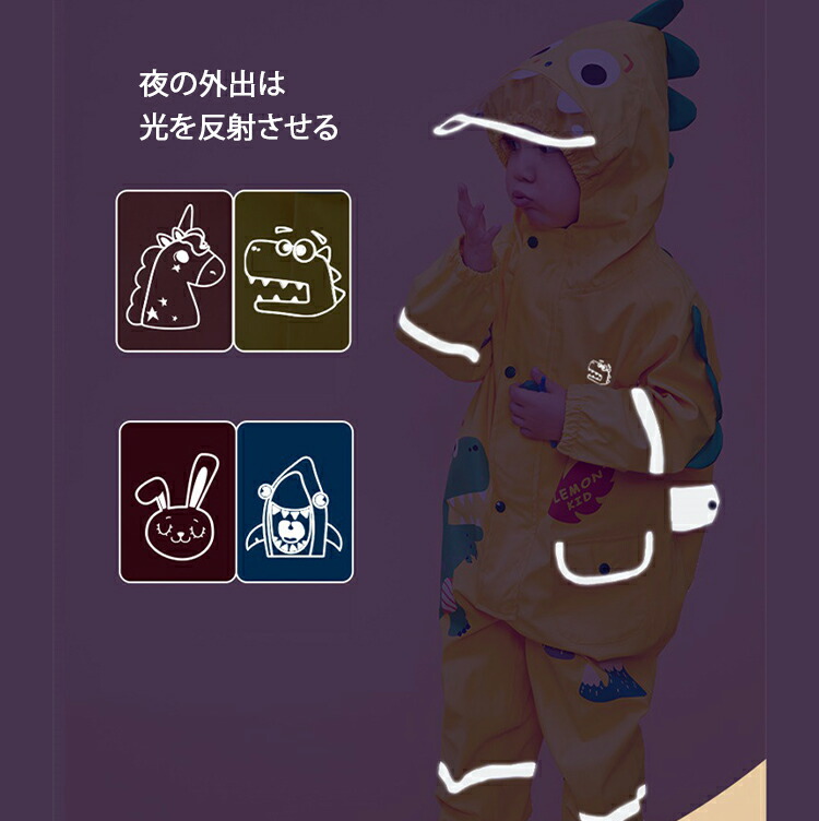 レインコート キッズ オールインワンレインコート フード付き 長袖 長ズボン 子供用 男の子 女の子 全4種 恐竜 ユニコーン うさぎ シャーク S M L 幼稚園 小学校低学年 キッズレイン XL