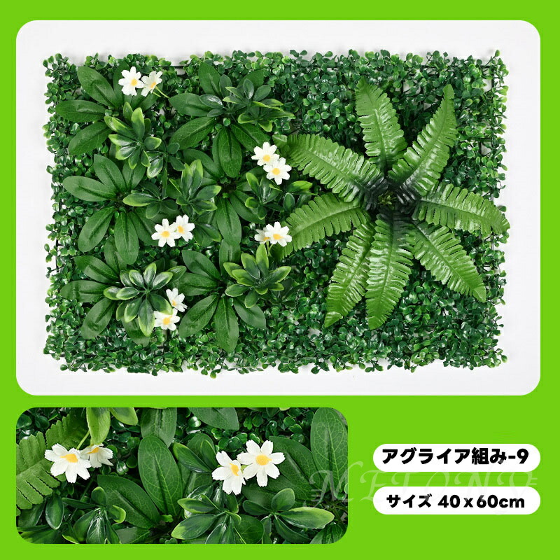 フェイクグリーン 壁掛け 観葉植物 フェイク 人工 壁 吊り下げ 大型 屋外OK グリーンフェンス インテリアグリーン 40x60cm 目隠し ベランダ ウォールインテリア 連結可