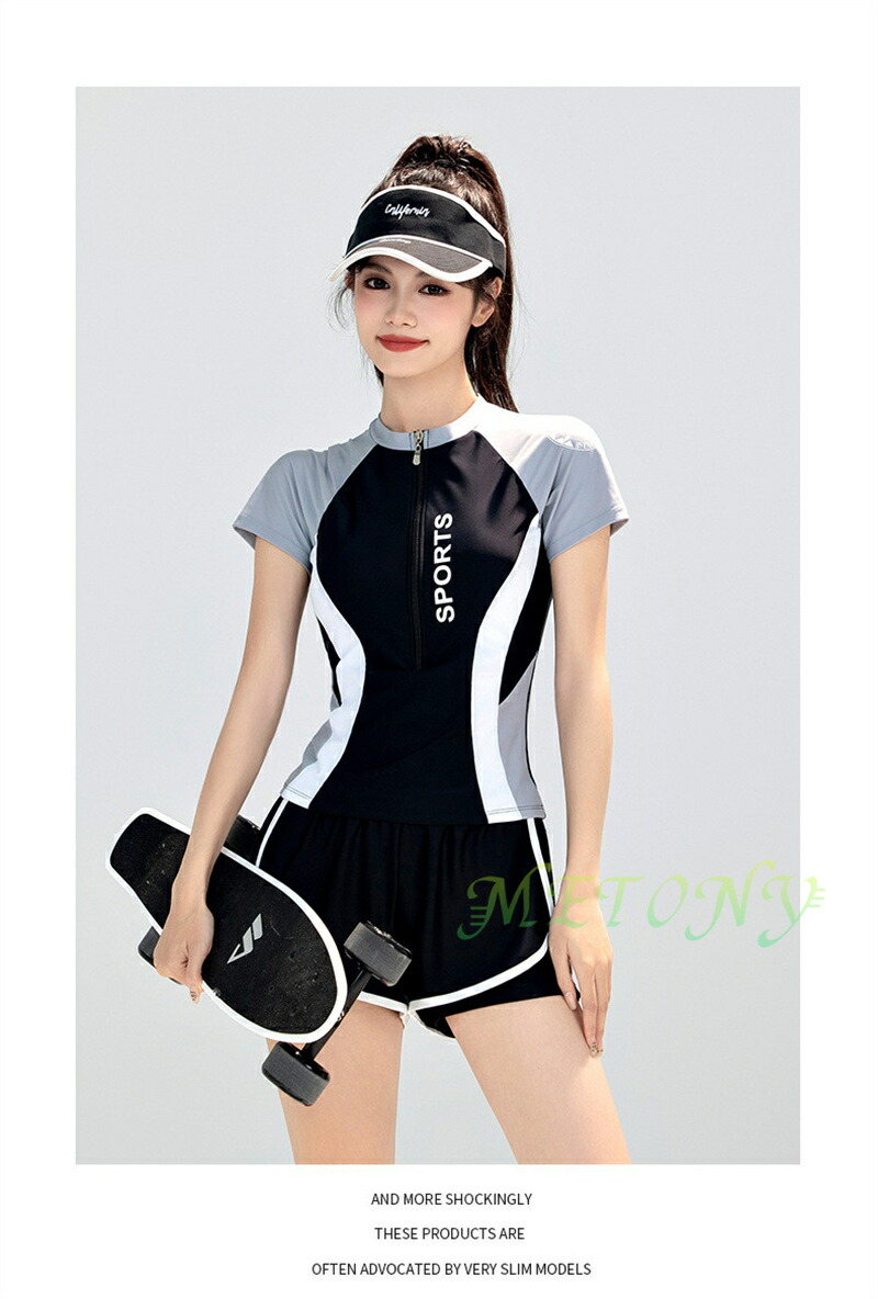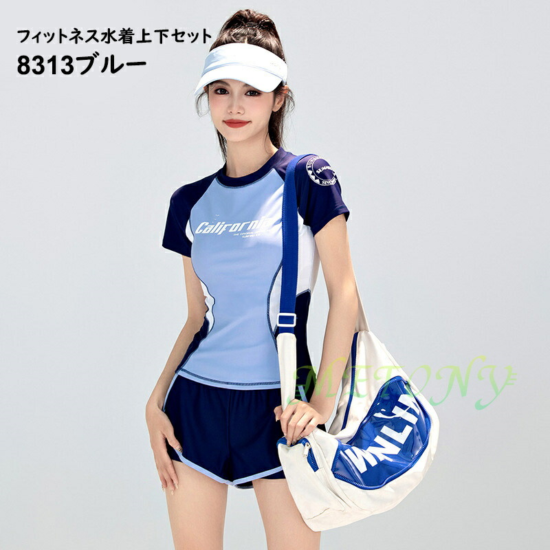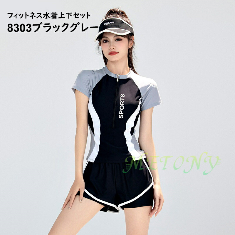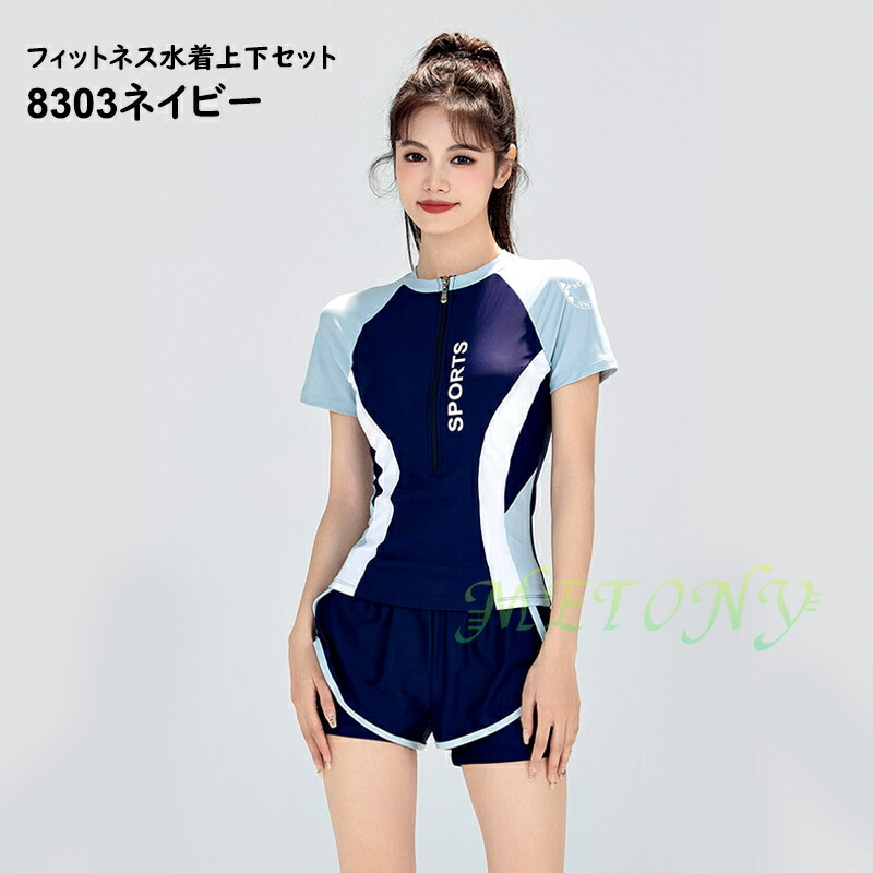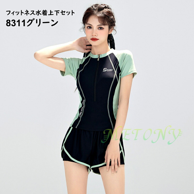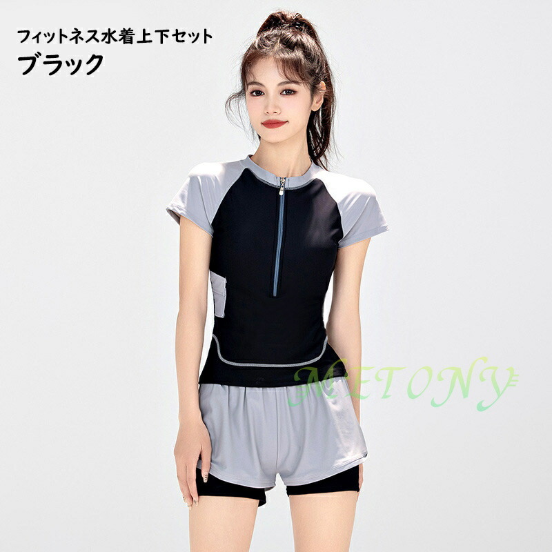 フィットネス 水着 レディース フィットネス水着 2点セット ママ ぽっちゃり 体型カバー オトナ女子 大きいサイズ 20代 30代 40代 50代 半袖 水泳 スイム 女性用