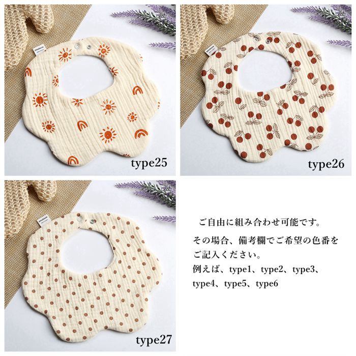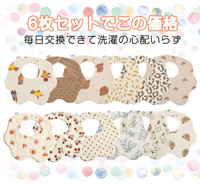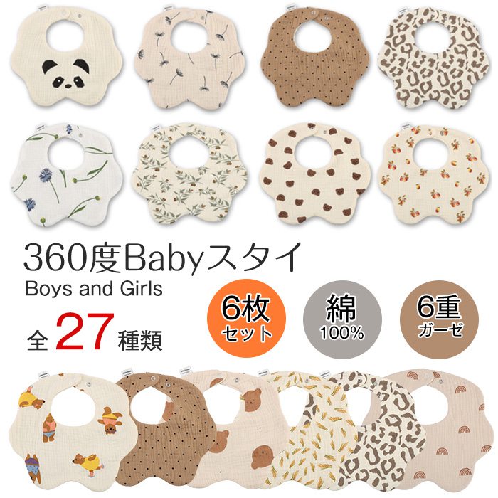 大好評 お得なスタイ6枚セット よだれかけ ガーゼ 360° 全40柄 ベビー 赤ちゃん ビブ 前かけ 花型綿100 コットン 6重ガーゼ 男児 ボーイズ ガールズ 新生児 女児