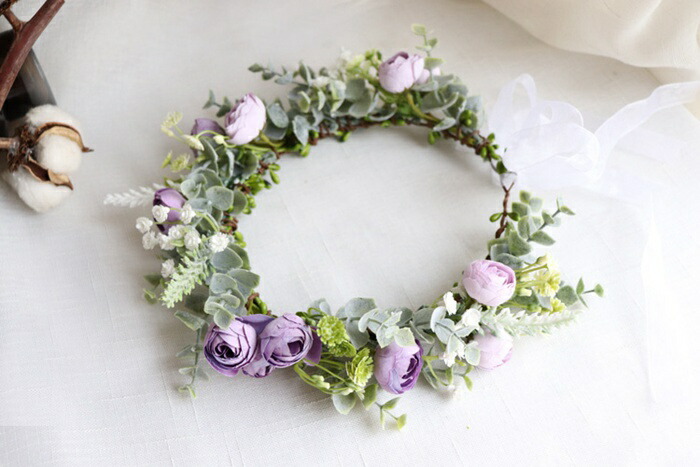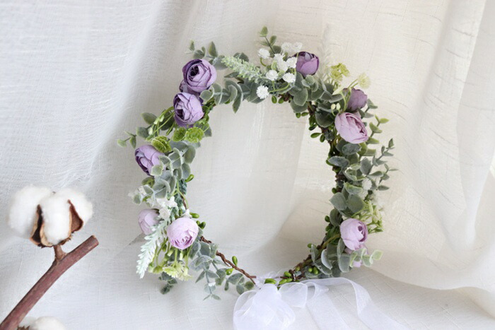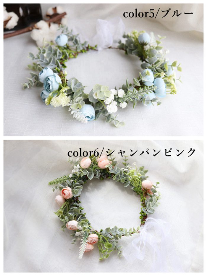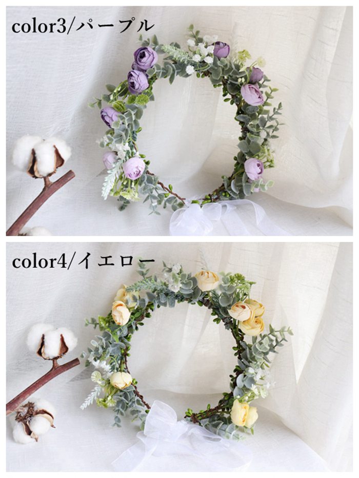 ヘッドドレス 花冠 ナチュラルフラワー ジュエリー アクセサリー 新登場! color1/ホワイト color2/ピンク color3/パープル color4/イエロー color5/ブルー color6/シャンパンピンク