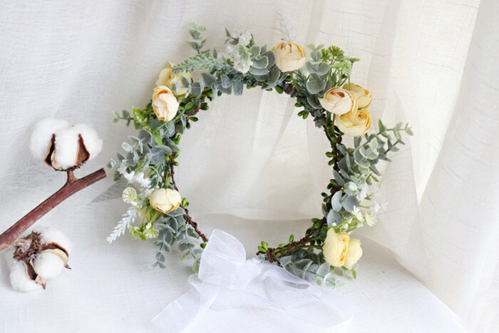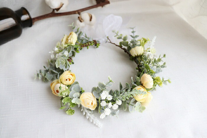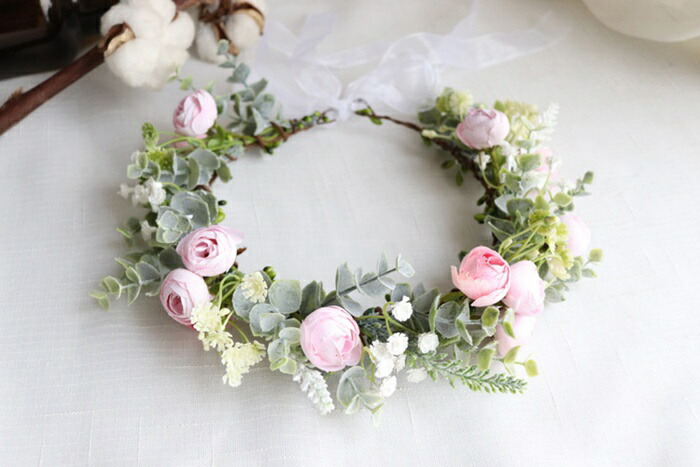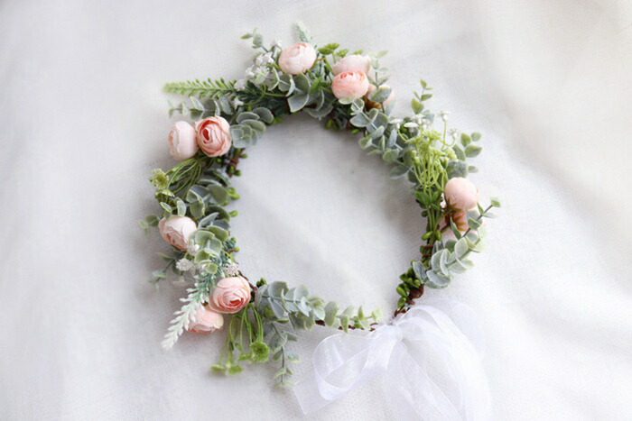 ヘッドドレス 花冠 ナチュラルフラワー 結婚式 ウェディング ブライダル 結婚祝い 二次会 お色直し ポリエステル 椿プレゼント 贈り物 ウェディングリース かわいい パーティ コンクール おしゃれ