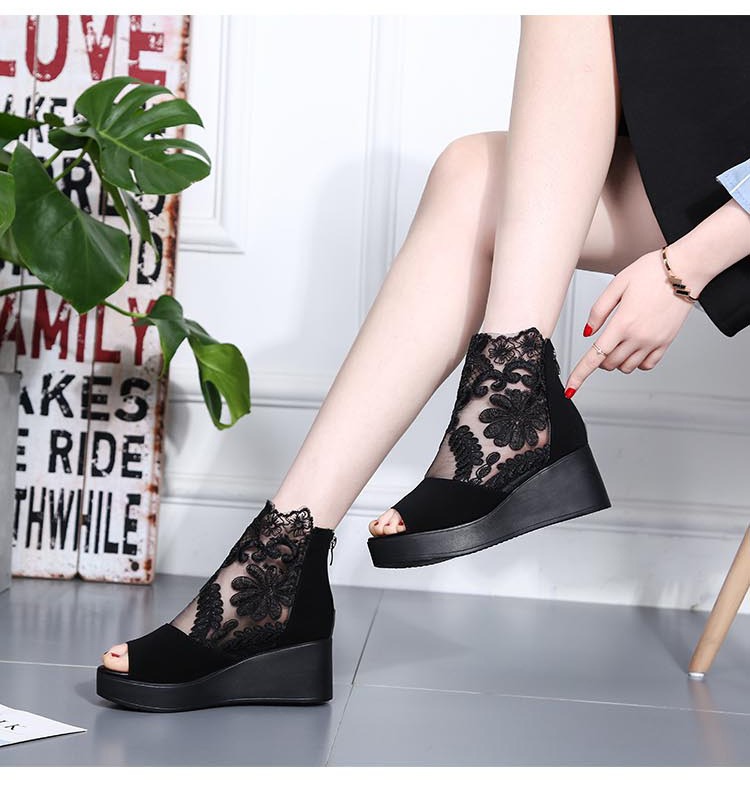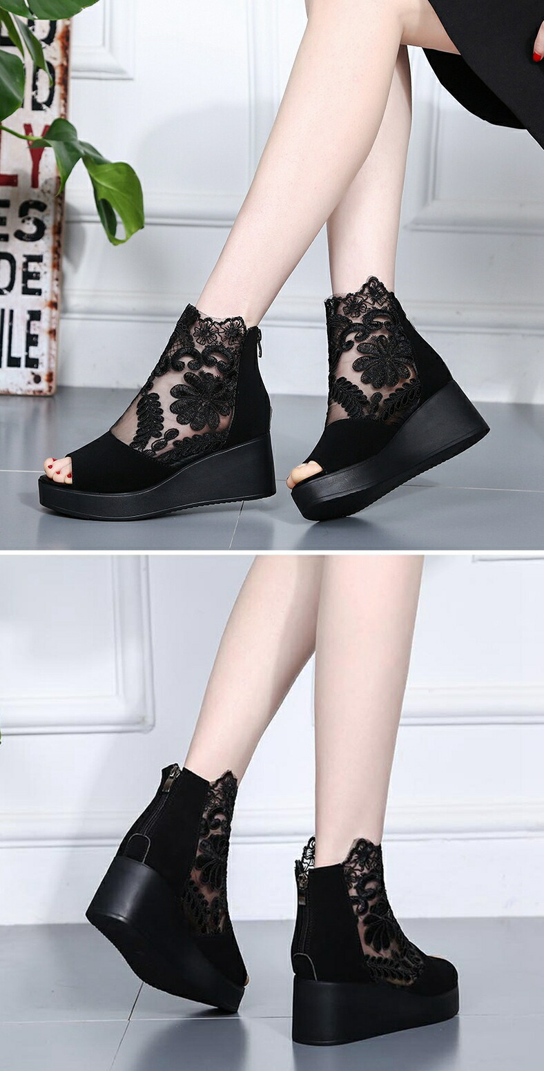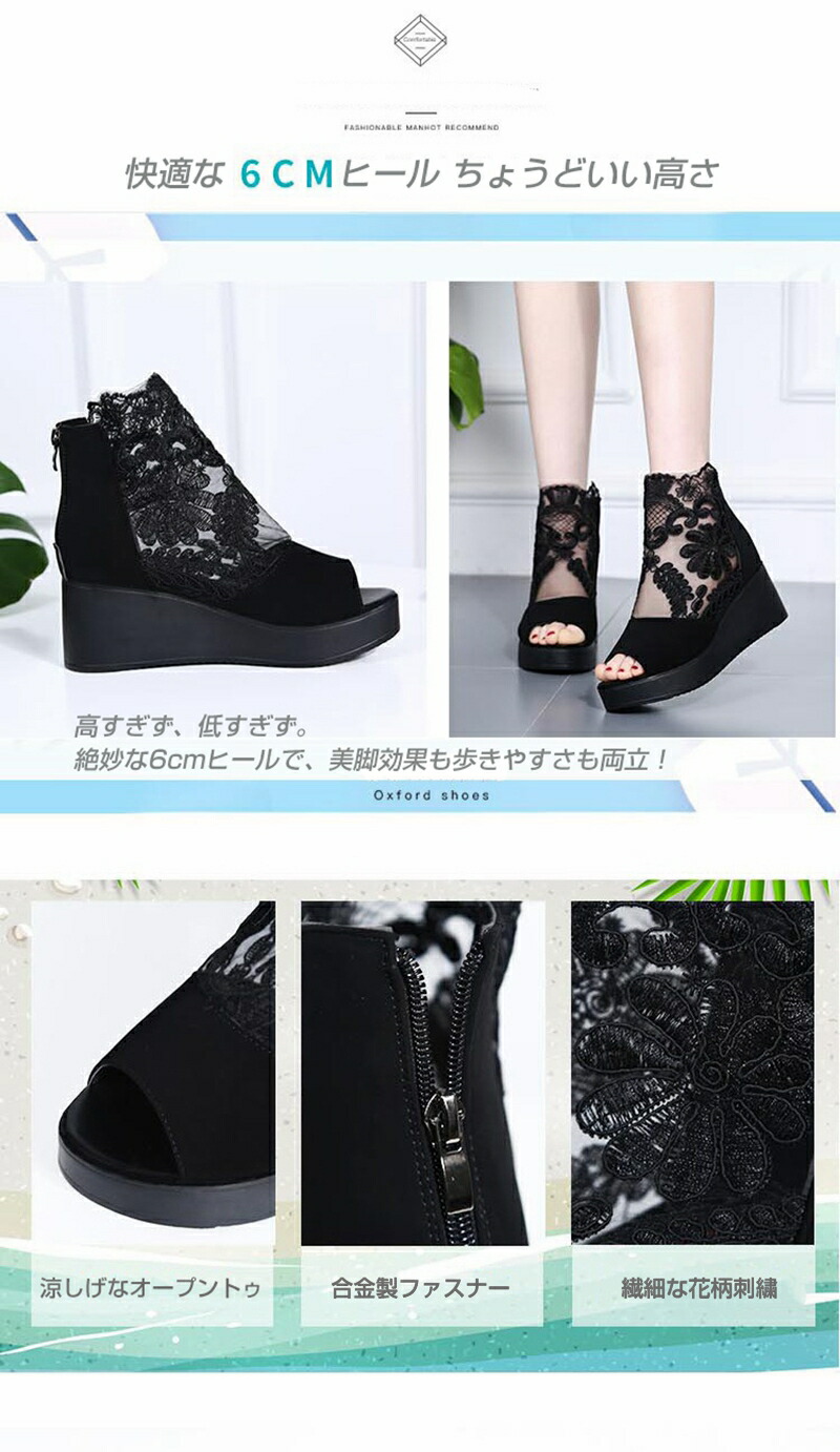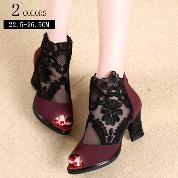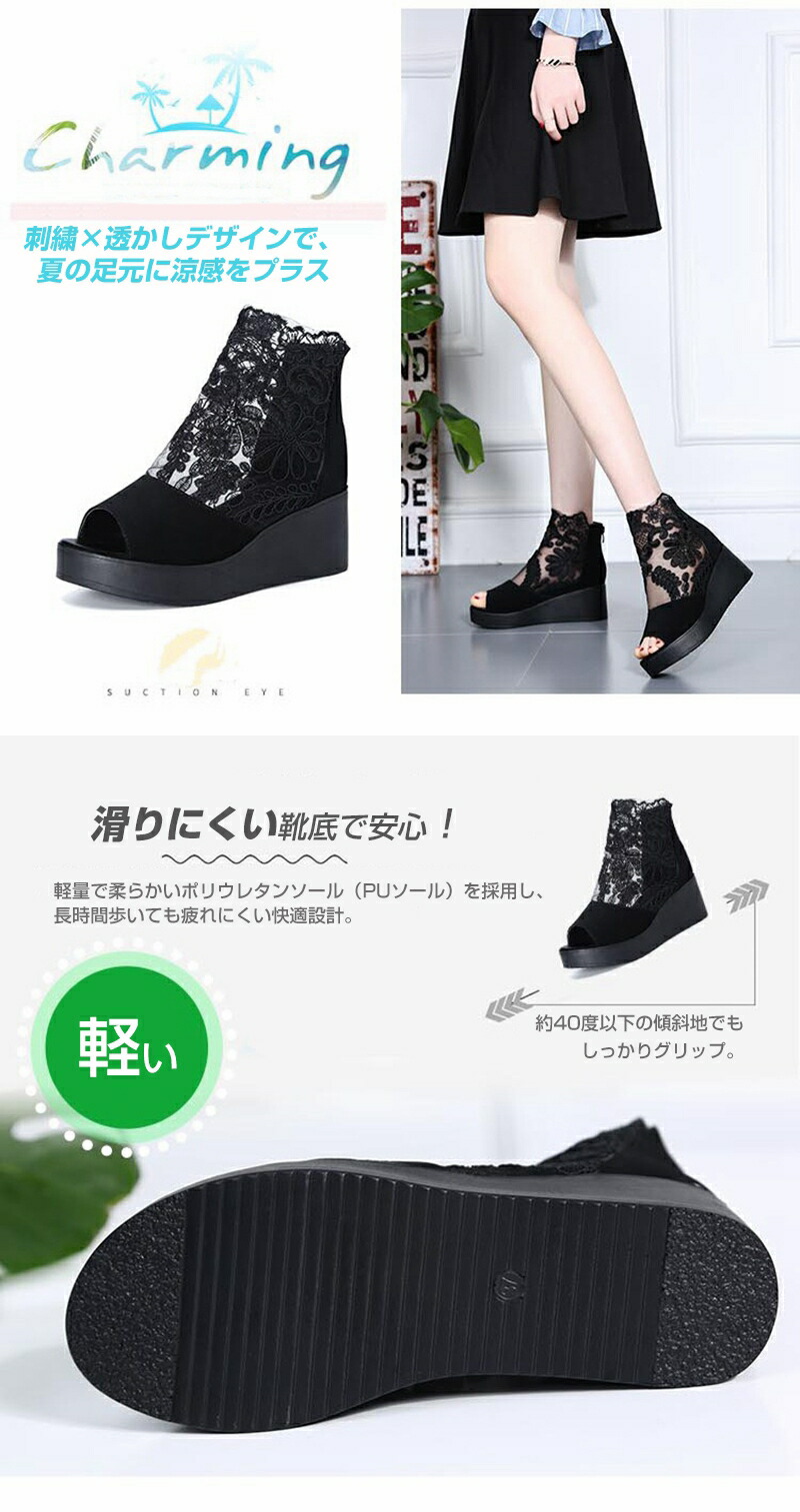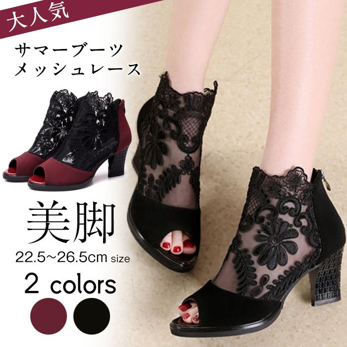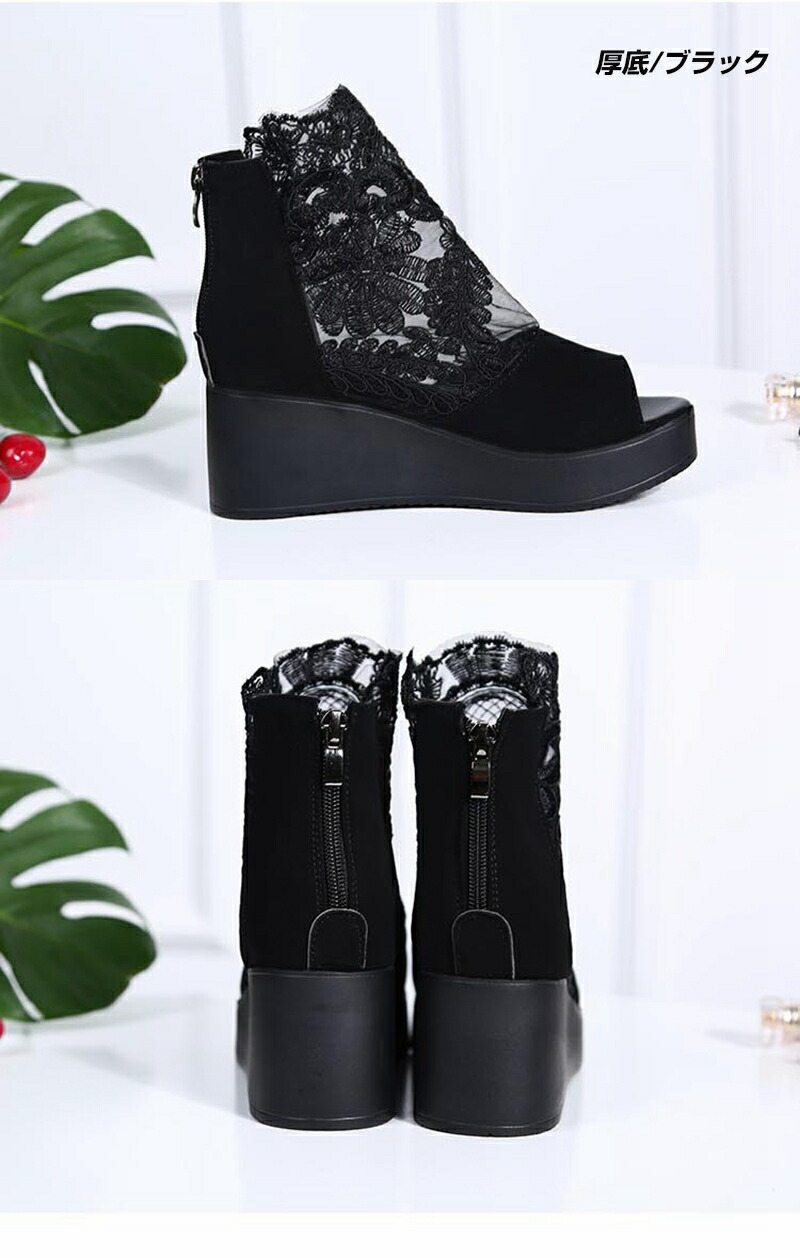 サマーブーツ レディース ブーツサンダル スプリングブーツ アンクルブーティ春ブーツ 夏ブーツ メッシュレース 美脚サンダル 厚底 22.5-26.5cm シースルー 透かし フラワーレース ブーサン