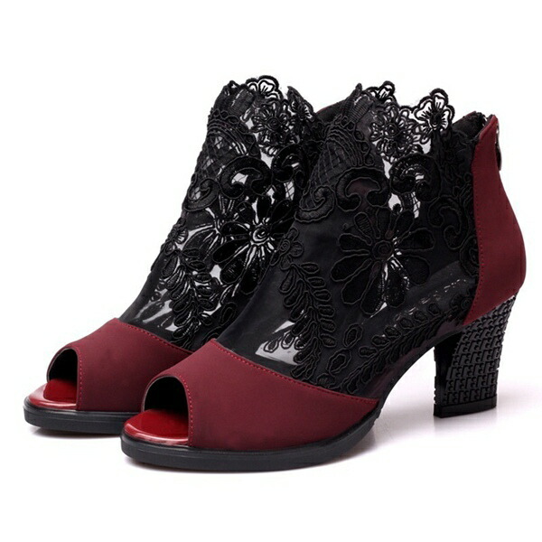 フラワーモチーフ入りの透かしメッシュデザインがエレガントで女性らしいサマーブーティ!