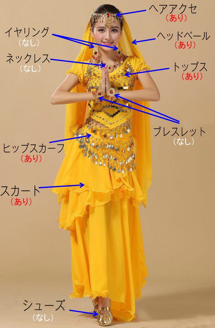 セット内容:4点セット:ヘッドベール(ヘアアクセ)、トップス、スカート、ヒップスカーフ(※他は商品に含まれません)