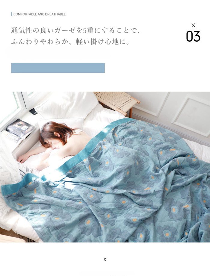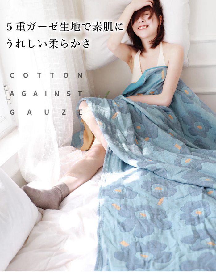 5重 ガーゼケット シングル タオルケット 花柄 綿100% 150cm*200cm 200cm*230cm 5重ガーゼ 夏掛け 肌掛け 涼感 通気性 ガーゼタオルケット 肌掛け布 吸水