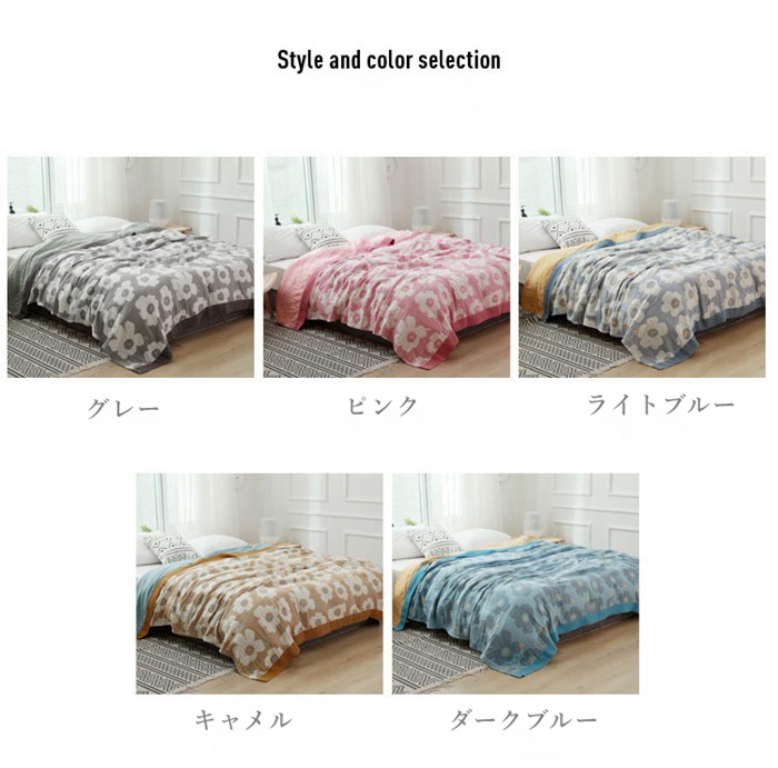 5重 ガーゼケット シングル タオルケ インテリア 寝具 収納 続々入荷中 150*200CM 税込3,999円 200*230CM 別途+税込1,500円 グレー ピンク ライトブルー キャメル ダークブルー
