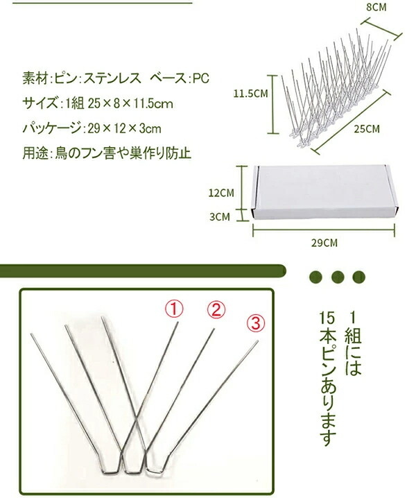 鳥よけ カラスよけ ハトよけ すずめよけ ステンレス ピン 針 ベランダ 屋根 家 マンション 屋上 庭 室外機 軒下 窓 塀 橋 建物 撃退 侵入 動物