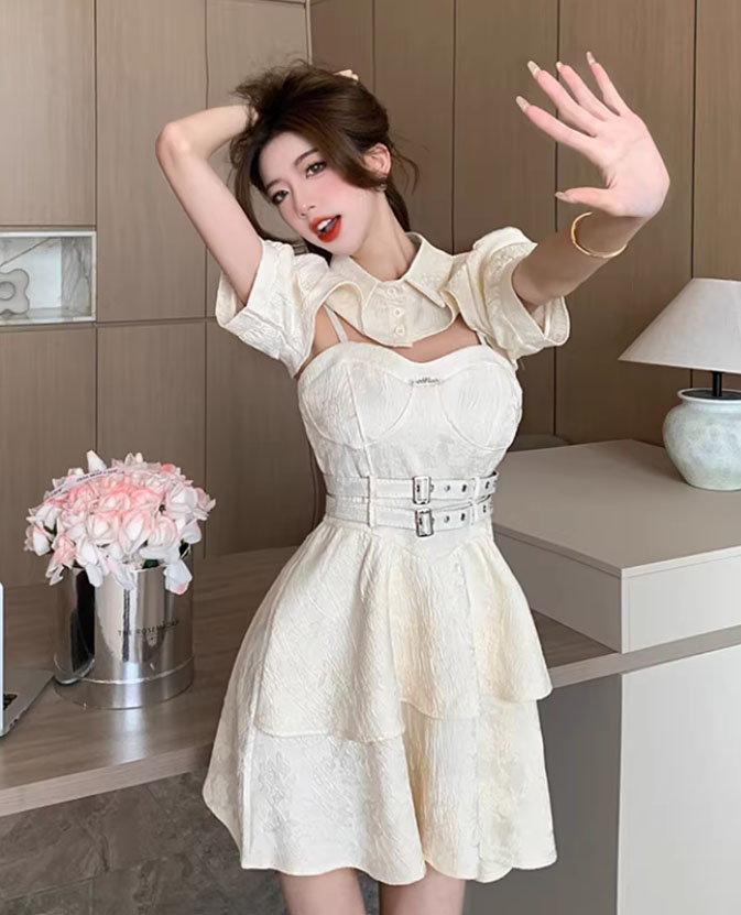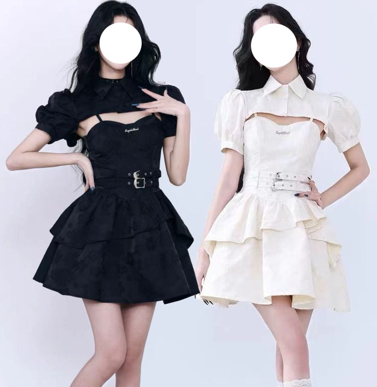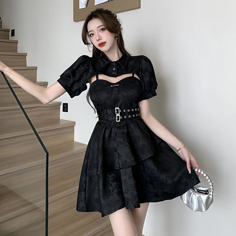 ゴシック ロリータ ワンピース ショート丈 ミドル丈 ジャンパー スカート 2点セット 半袖 肩掛け ボレロ ケープ Aライン パンク風 レディース ハロウィン コスプレ 暗黒