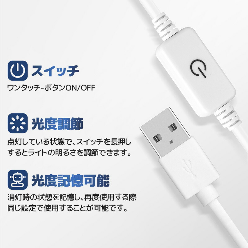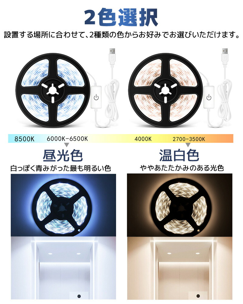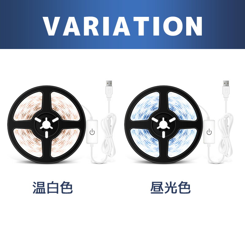 led usb 防水 5v タッチライト ledライト 2m 2メートル テープライト 粘着テープ 屋内 照明 小型 常夜灯 玄関 階段 廊下 寝室 クローゼット 昼光色 屋外 ledテープラ 温白色