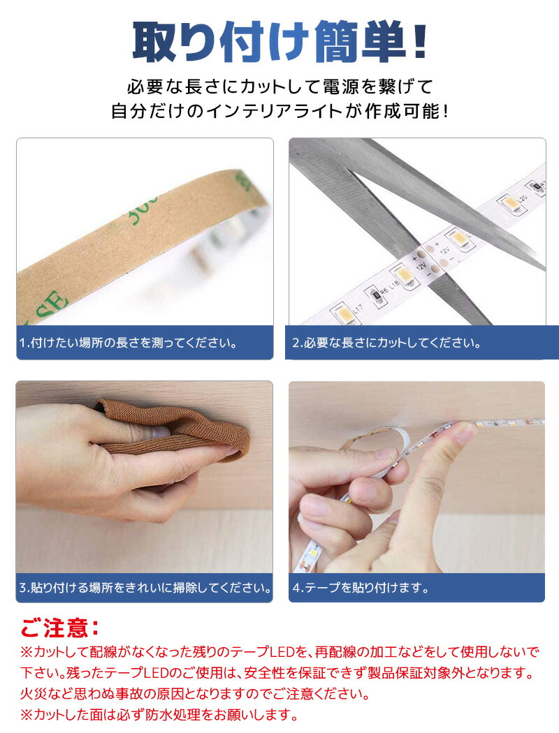 ※LEDテープを巻いた状態で点灯させないで下さい。(発熱の原因となります)