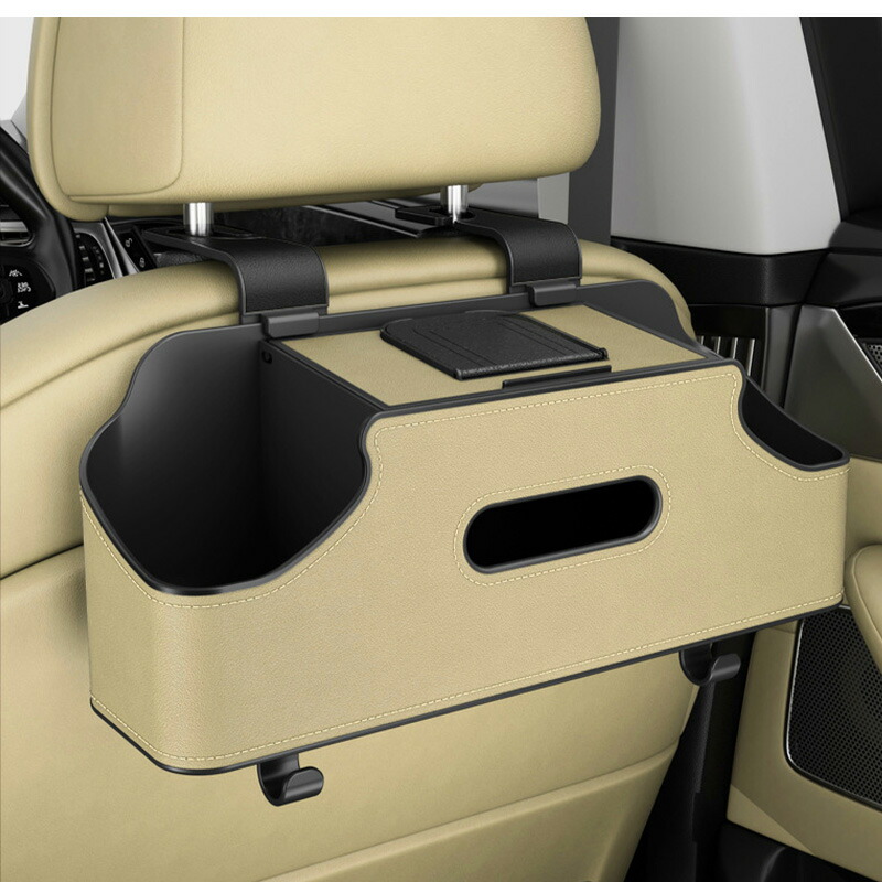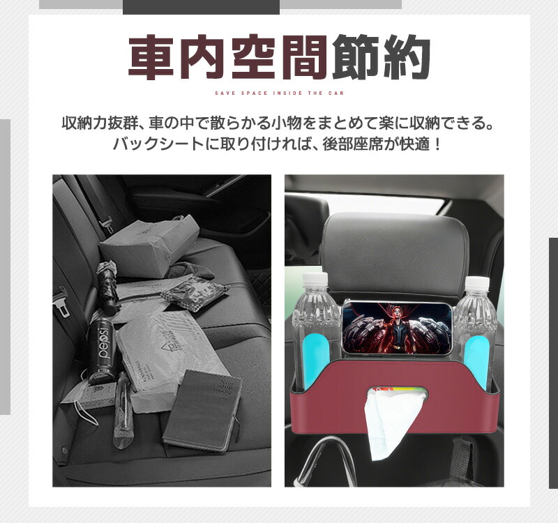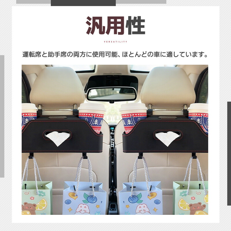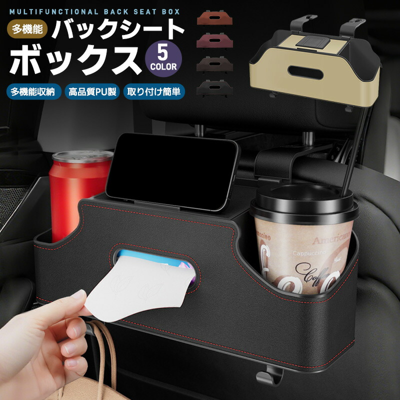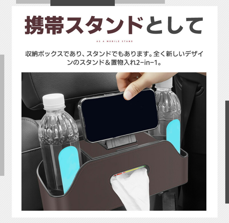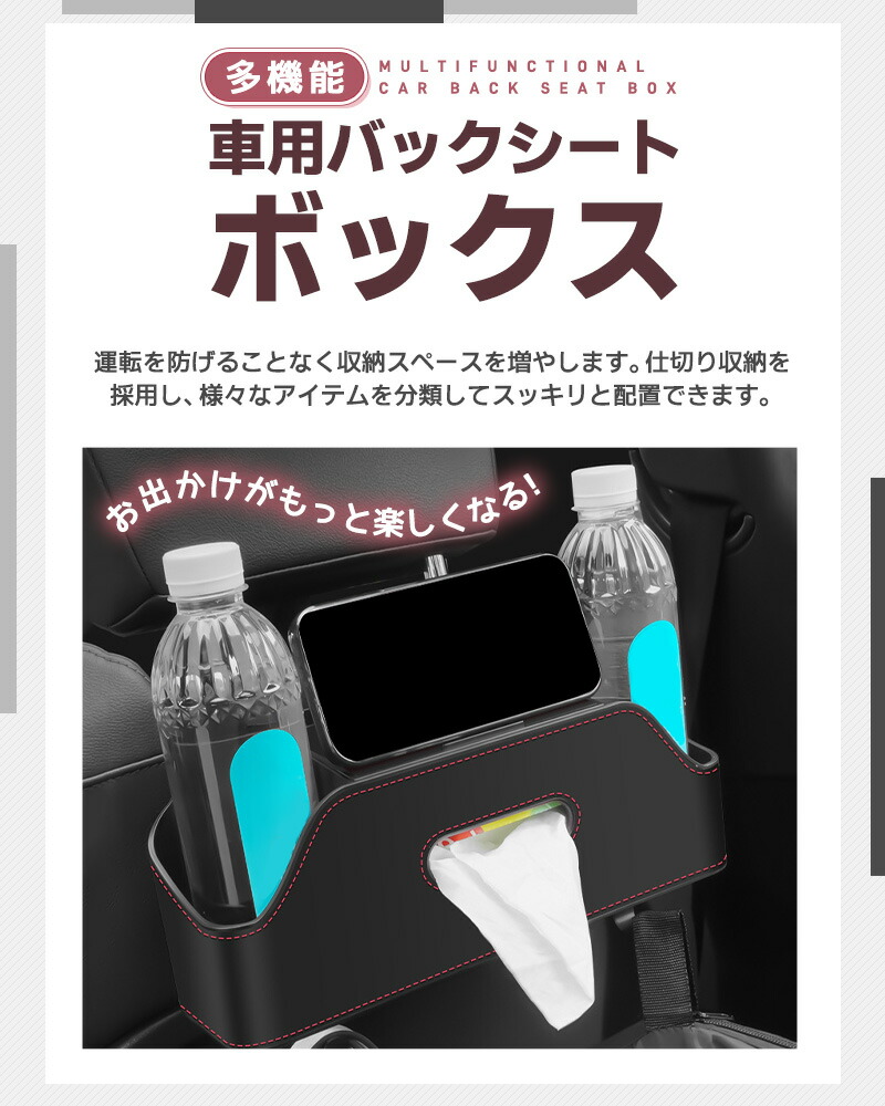 多機能シートバックボックス 車用 車収納ボックス ドリンク ホルダー 水筒 ボトル収納 後部座席 ティッシュケース ティッシュホルダー PU 省スペース 防水防汚 耐摩耗 吊り下げ マル 取り付け簡単