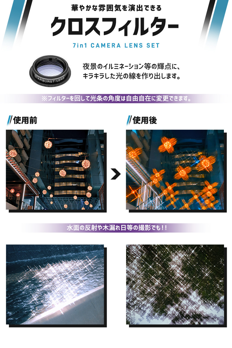 魚眼レンズ 広角 マクロ アイフォン 特殊効果 クロスフィルター キラキラ効果 iPhone インスタ Instagram android ケラレ 魚眼 夜景撮影 接写レンズ 15X 0.63X レンズセット 198° 2倍望遠レンズ イルミネーション レンズカバー スマホ用レンズ スマートフォンレンズ セルカレンズ 15倍レンズ 望遠レンズ スマホカメラ用 広角レンズ 広範囲撮影 マクロレンズ 万華鏡効果 CPL偏光フィルター CPL Lens 顕微鏡チックな写真 15倍マクロレンズ 0.63倍広角レンズ 撮影機器 自撮り タブレット対応 Samsung xperia galaxy Huawei iphone12pro iphone13 iphone14 iphone15 クリップ式レンズ スマホに簡単装着 収納ケース付き 便利グッズ スマホ用マクロレンズ 高倍率 天体写真 コスパ 高級感 取付簡単 歪みなし キャップ付き 光学ガラス 高画質 軽量 iOS シンプル コンパクト 保護キャップ付き 合金製 シンプル オシャレ かわいい アンドロイド パーティー パノラマ写真 クリーニングクロス付き 持ち運び便利 小型 高級感 ラキラした光に演出 クロススクリーン 7in1 旅行 お出かけ ランキング おすすめ 大人気 発表会 運動会 入学祝い 内祝い 出産祝い 誕生日 お返し プレゼント ギフト ラッピング ギフトラッピング 対応 ギフトラッピングサービス