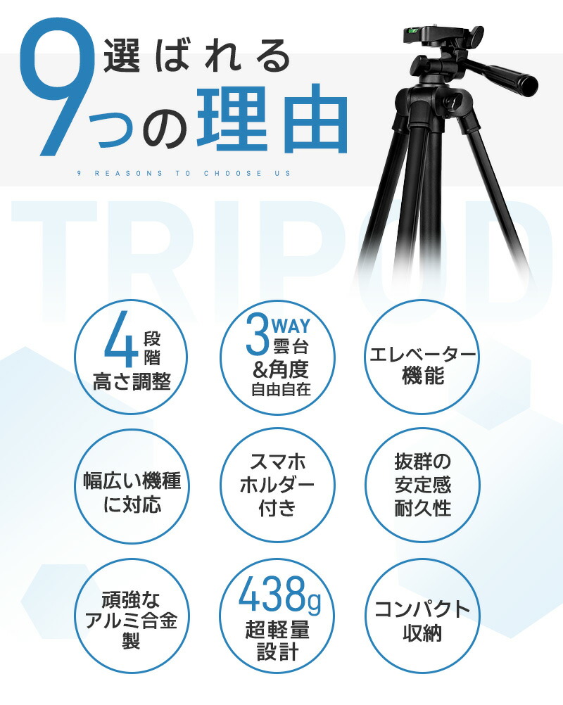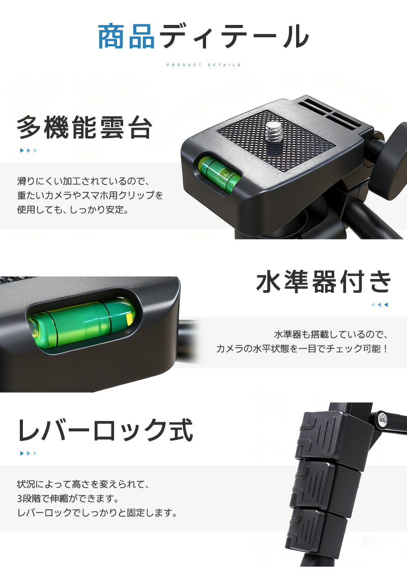 三脚 カメラ用 スマホ三脚 ミニ三脚 折りたたみ三脚 ビデオカメラ三脚 撮影用 150cm フック付き 俯瞰撮影 一眼レフ 持ち運び便利 デジカメ対応 スマホホルダー付き 写真撮影 ライブ配信 テレビ会議用 YouTube撮影 TikTok撮影 Vlog三脚 高さ調整可能 エレベーター機能 28cm調整可能 最低高さ43cm 収納後44cm ミラーレス対応 ローアングル撮影 収納袋付き 4段階伸縮 UNC1/4インチ 360回転 自由雲台 水準器付き 安定感抜群 ゴム脚 滑り止め 頑丈素材 耐久性 アルミ合金製三脚 耐荷重1.5KG 438g 旅行撮影 運動会 スポーツ観戦 結婚式撮影 イベント撮影 集合写真 風景 夜景撮影 家族写真 長時間撮影 三脚初心者向け 角度調節 安定撮影 ねじ規格UNC1/4インチ 汎用 幅広い対応 スマートフォン対応 撮影グッズ カメラアクセサリー 写真好き 高コスパ三脚 収納簡単 軽量 デジタル一眼レフ 3Way雲台 コンパクトデジカメラ 折り畳み式 多機能 旅行 卒業式 スタンド 床置き 生放送 自撮り 卓上 携帯 iPhone android 発表会 お祭り 登山 花火大会 お花見 ランキング おすすめ 大人気 発表会 運動会 入学祝い 内祝い 出産祝い 誕生日 お返し プレゼント ギフト ラッピング ギフトラッピング 対応 ギフトラッピングサービス