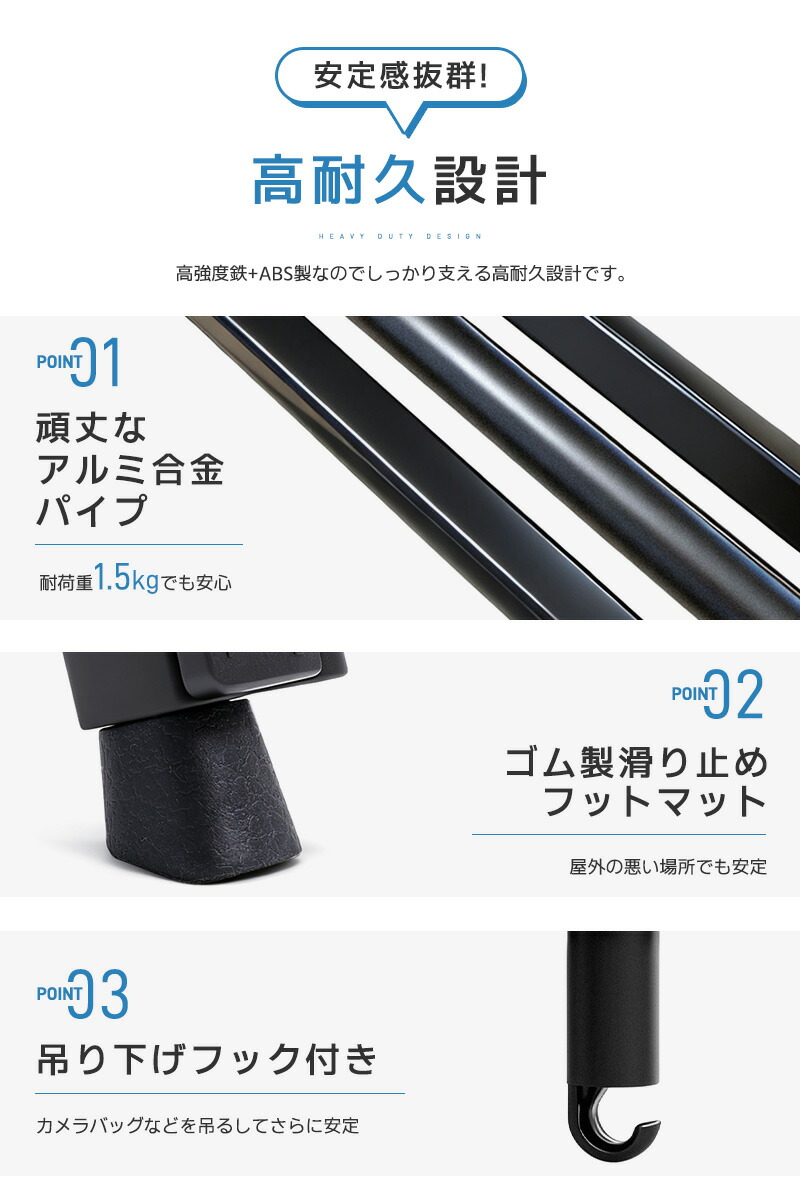 ※この製品は1.5kg(耐荷重)までの機材を載せるように作られています。それ以上の機材は載せないでください。