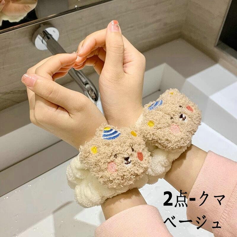 洗顔セット ヘアバンド リストバンド レディース ふんわり 伸縮性 吸湿性 タオルバンド ゴム入り ヘアターバン お風呂 化粧 ヘアアクセ 可愛い キャラクター 子供 キッズ ヘア 蝶結び