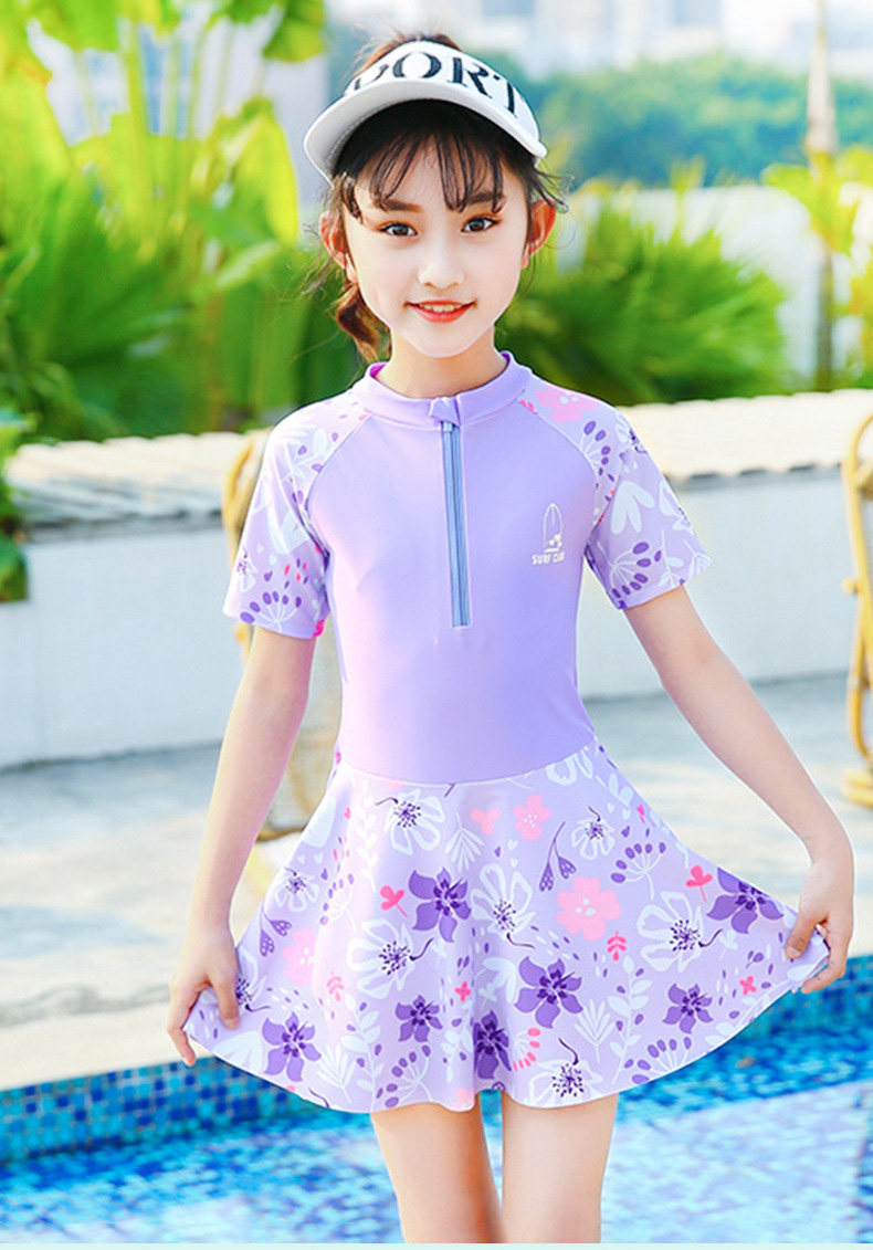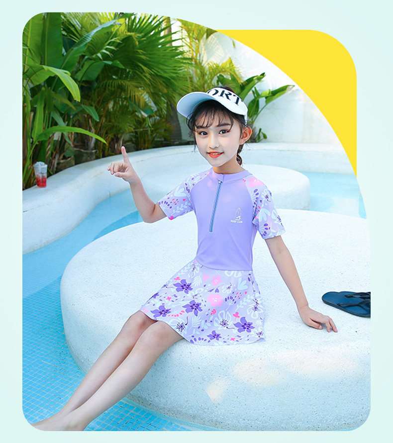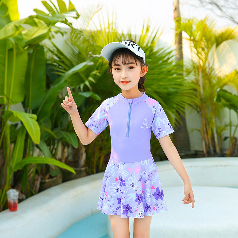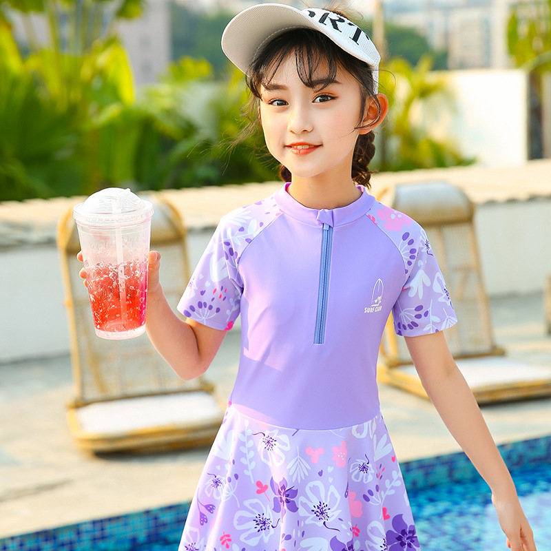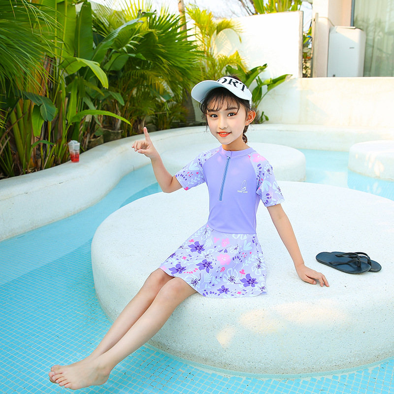 水着 キッズ 女の子 ワンピース水着 ジュニア水着 スイムウェア ラッシュガード 半袖 スカート スイムスーツ インナーパンツ付き ビーチウェア 水泳 スクール水着 練習着 子供 み ジュニア