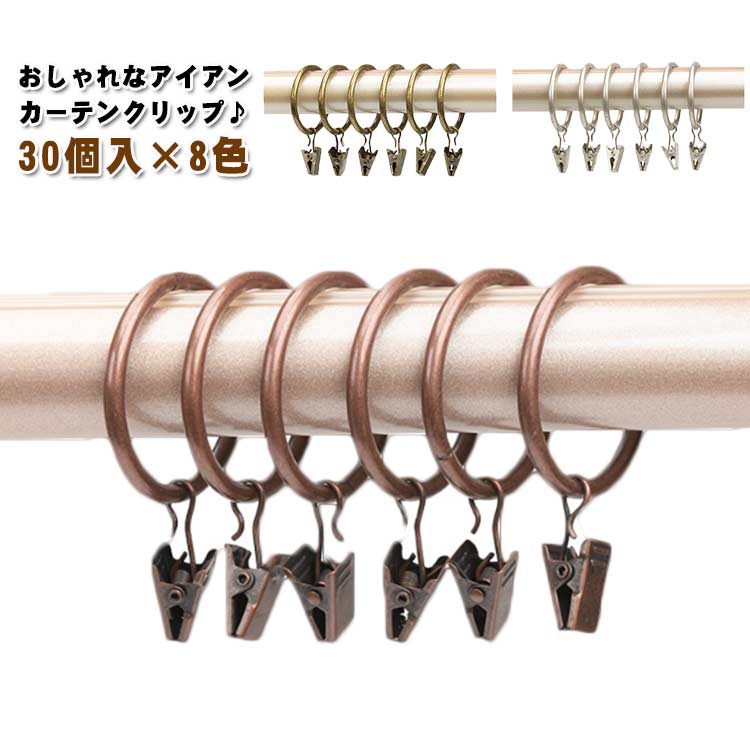 おしゃれなアイアンカーテンクリップ♪ 30個入×8色