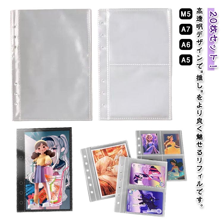 シール帳 リフィル M5 A7 A6 A5 20枚 カードファイル トレカスリーブ トレカアルバム カードバインダー シール台紙 剥がせる 6穴対応 はがせる 台紙 バインダー手帳
