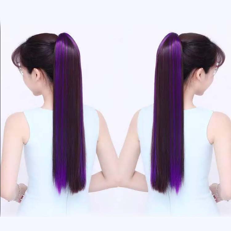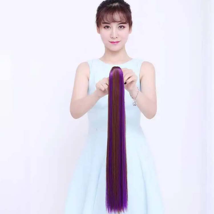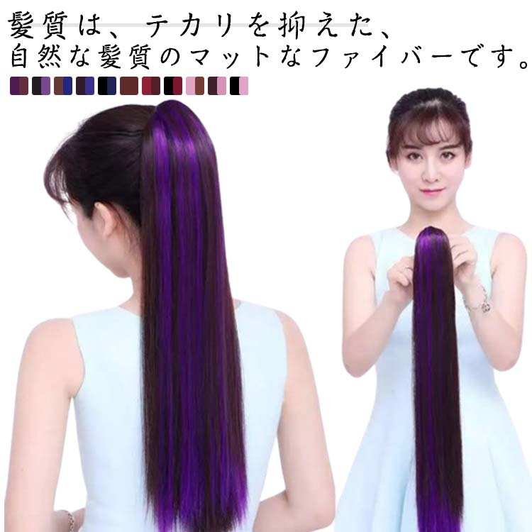 クリップ式 グラデーションカラー 髪の長さ約60cm 原宿 ストレート グラデタイプ ハロウィン ロングポニーテール ウィッグ ポニーテール コスプレ ボリューム 簡単装着