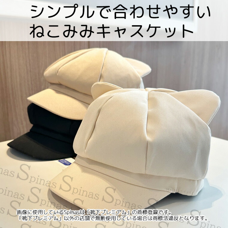 猫耳がついた定番シンプルなキャスケット帽。