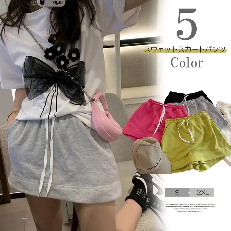 スカートライク S~2XL レディース スカート風 スウェット ショートパンツ スカパン スリム スウェットミニスカート パンツ ポケット付き