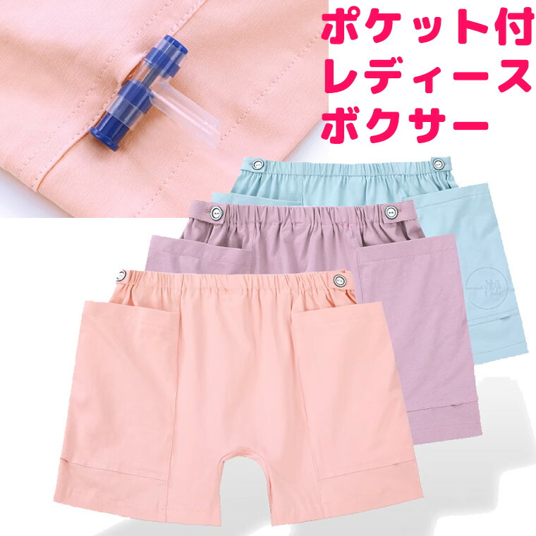ポケット付きボクサーパンツ レディース ポケット 両サイドポケット M L XL 2XL 3XL ドレナージバッグ ストーマ袋 無地 ボーダー シンプル 女性