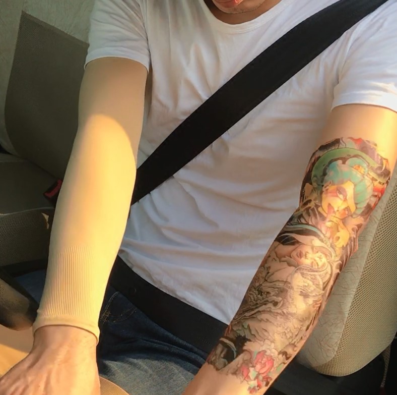 入れ墨やタトゥーの露出を抑えたい時にお使いいただけるシンプルなデザインのアームサポーター(カバー)です。