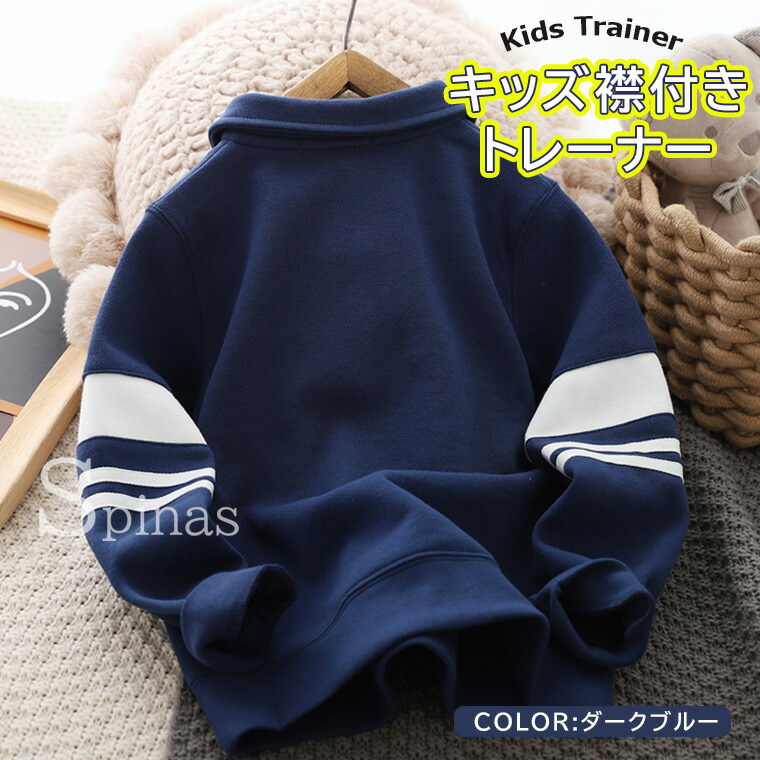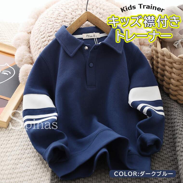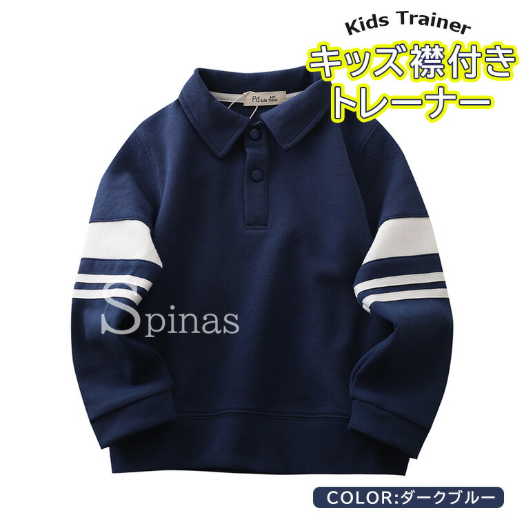 袖のラインがスポーティーなデザインのキッズ用長袖トレーナーのご紹介です♪ キッズ 男の子 トレーナー トップス ポロ襟 襟付き 袖のライン スポーティー