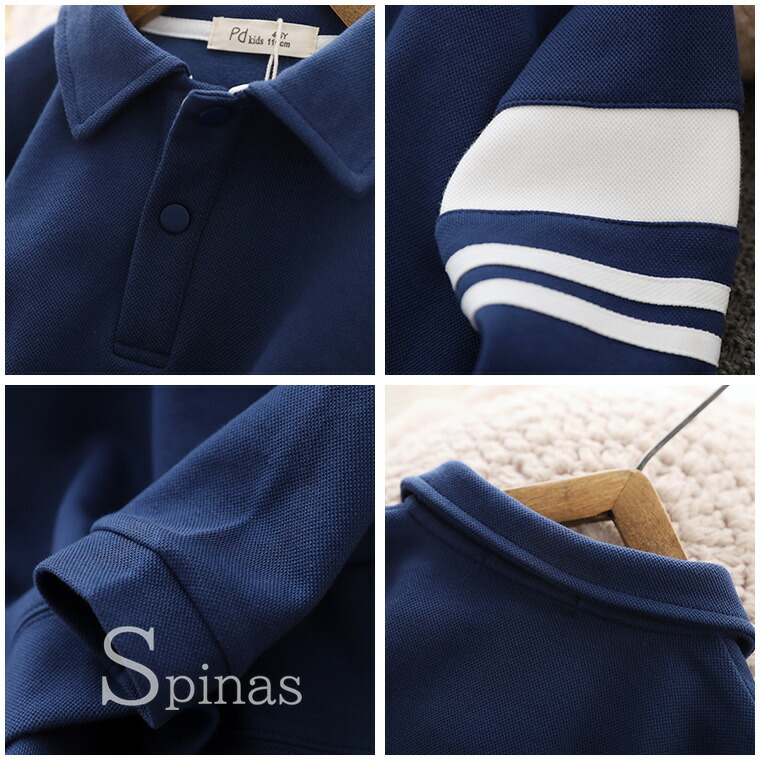 袖のラインがスポーティーなデザインの襟付き トレーナー♪ ポロシャツ 長袖 トップス キッズ 子供服 110-160cm ポロ襟 全4色 男の子
