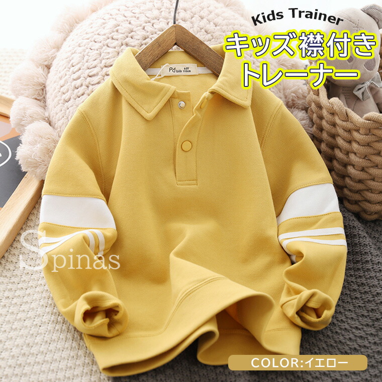 袖のラインがスポーティーなデザインの襟 キッズ トップス スウェット トレーナー 早い者勝ち 110cm 120cm 130cm 140cm 150cm 160cm ホワイト イエロー ライトブルー ダークブルー